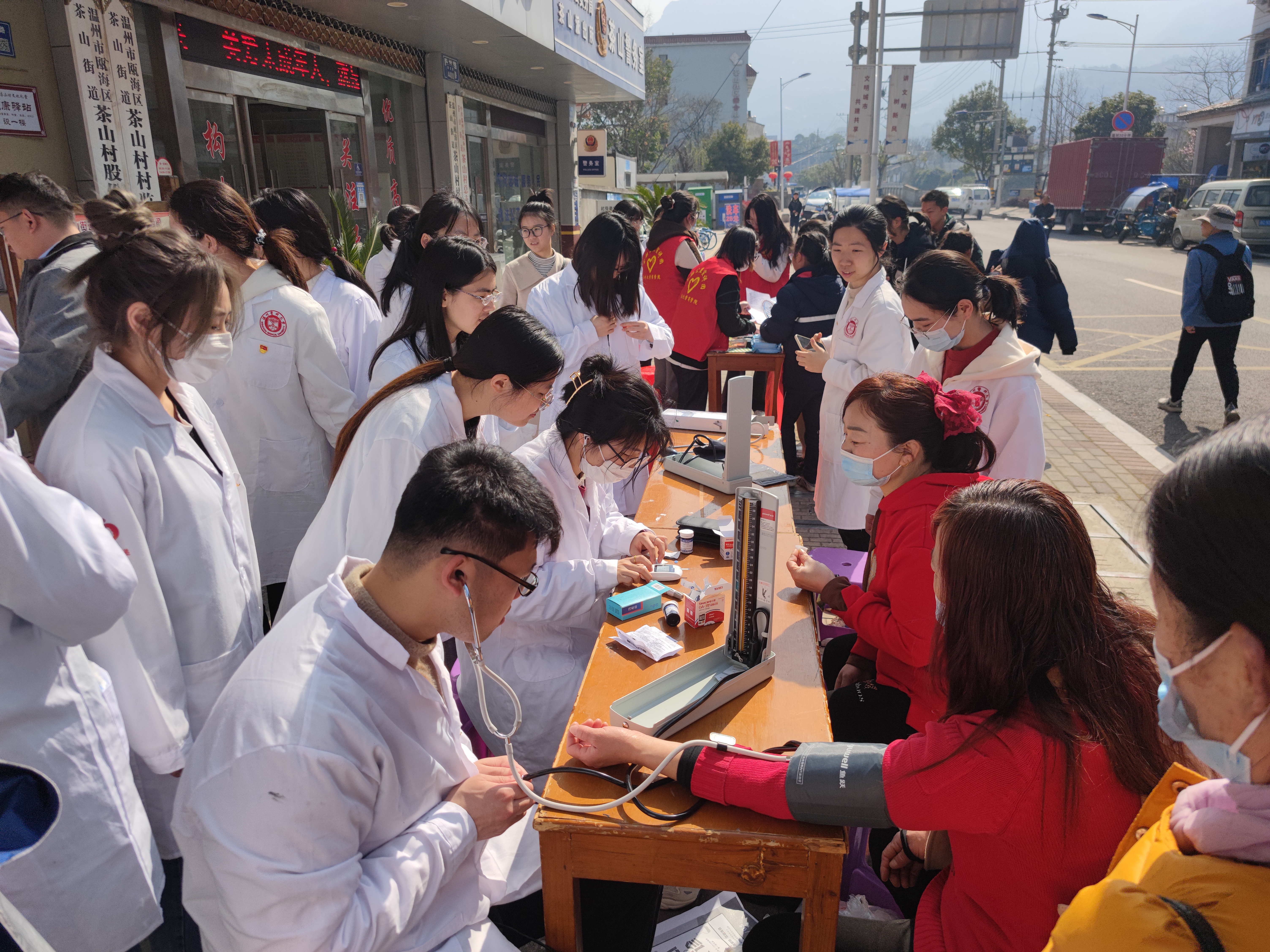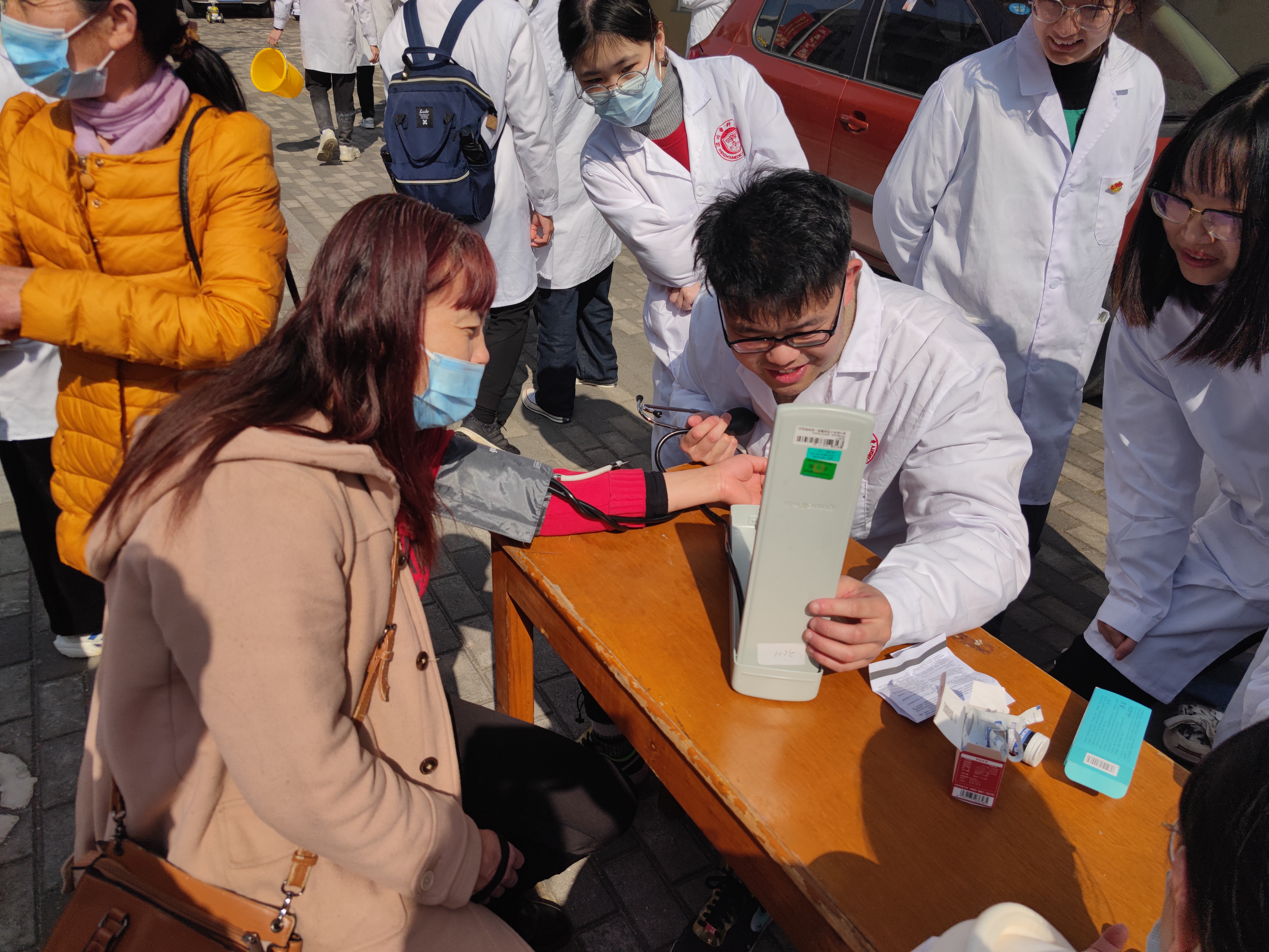 除此之外,温州医科大学第一临床医公司19级第一临床党支部的“天使”党员志愿者们为茶山村居民提供量血压、测血糖等爱心义诊服务,耐心细致地为居民科普医疗健康知识,春季传染病预防指南等,现场人头攒动。