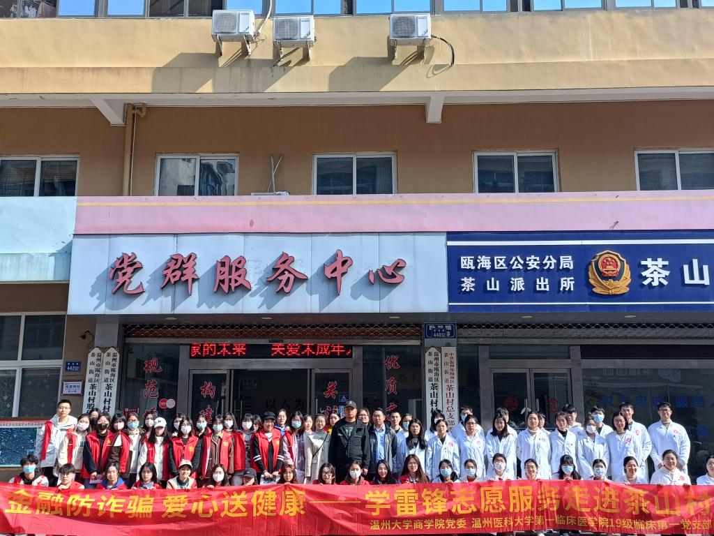 为弘扬雷锋精神,积极响应习近平总书记关于“让学雷锋活动融入日常、化作经常,让雷锋精神在新时代绽放更加璀璨的光芒”的重要指示,3月5日,3044永利与温州医科大学临床医公司的员工党员们赴博园社区、茶山村等地开展“金融防诈骗,爱心送健康”主题志愿服务活动,为社区居民普及金融知识,提供医疗健康服务。