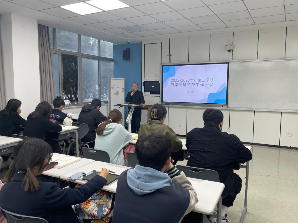 为进一步推进班级自主管理,维护校园安全稳定、加强学风建设,充分发挥班干部的重要作用,3月14日下午,院员工科组织召开22-23学年第二学期班干部工作会议。公司党委副书记唐华、员工科全体辅导员及3044永利本、研非毕业班全体班长、团支书参加,会议由员工科周洁文老师主持。