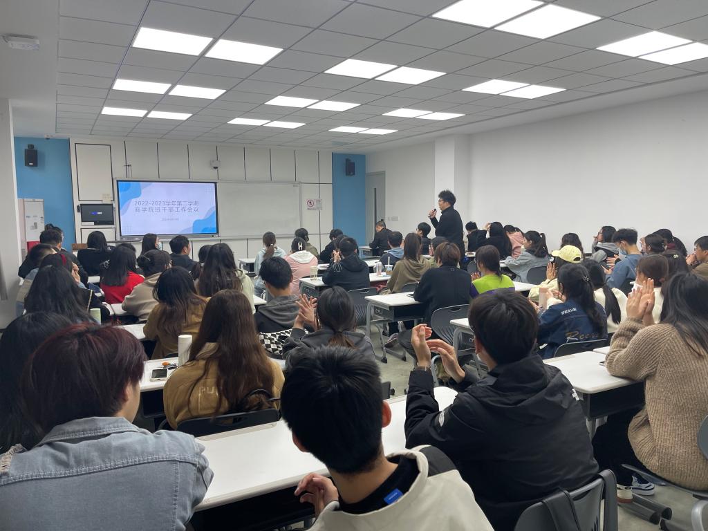 会上,员工科辅导员依次在学风建设、考研、助困、评奖评优、团组织建设、学科竞赛、就业等分管模块进行了介绍,向班干部们传达了本学期的工作要点。并针对近期同学们关心的学业、校园生活等问题进行答疑。