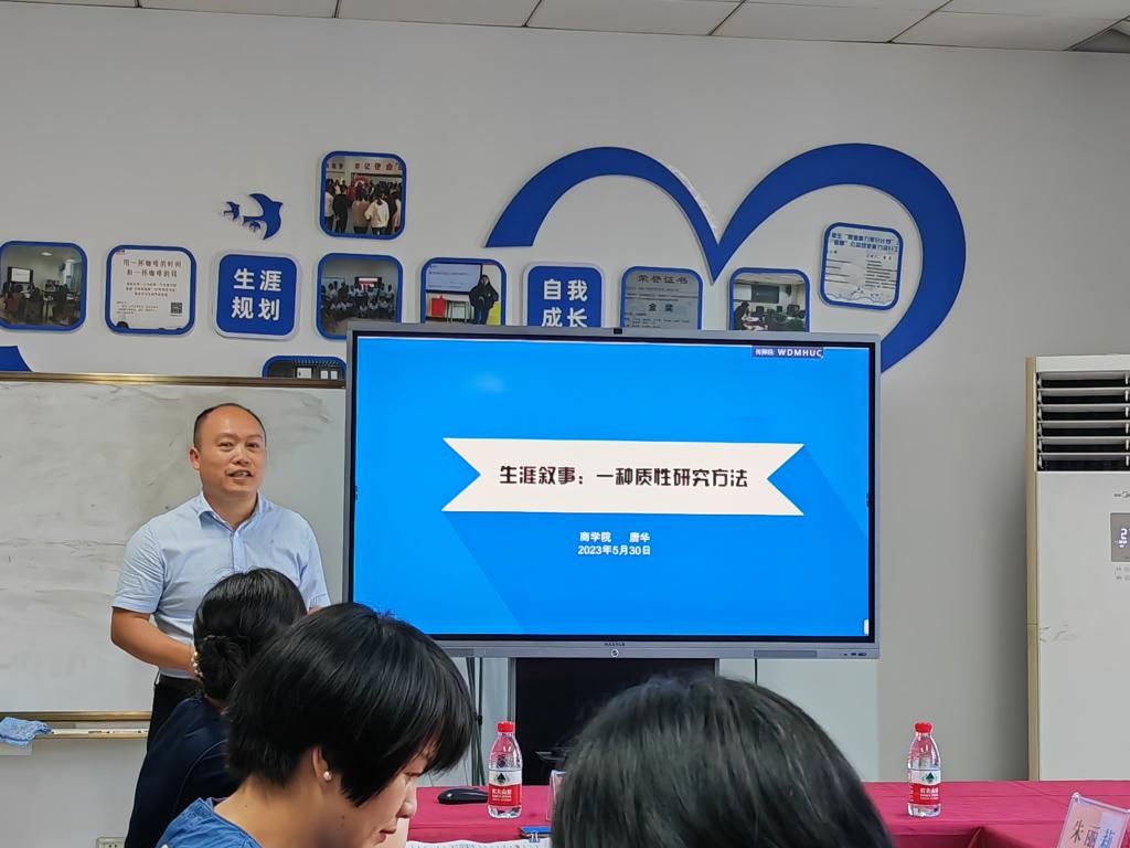 研究中心成员、公司党委副书记唐华以《生涯叙事:一种质性研究方法》为主题,介绍了质性研究、生涯叙事的定义和特征,并进行结合自己的学习经历和实际工作,深入浅出地分享了如何在员工工作和生涯教育中开展质性研究,并鼓励辅导员等员工工作者积极利用质性研究对工作中遇到的案例等进行分析总结,将实际工作积累转化为深层的学术研究。