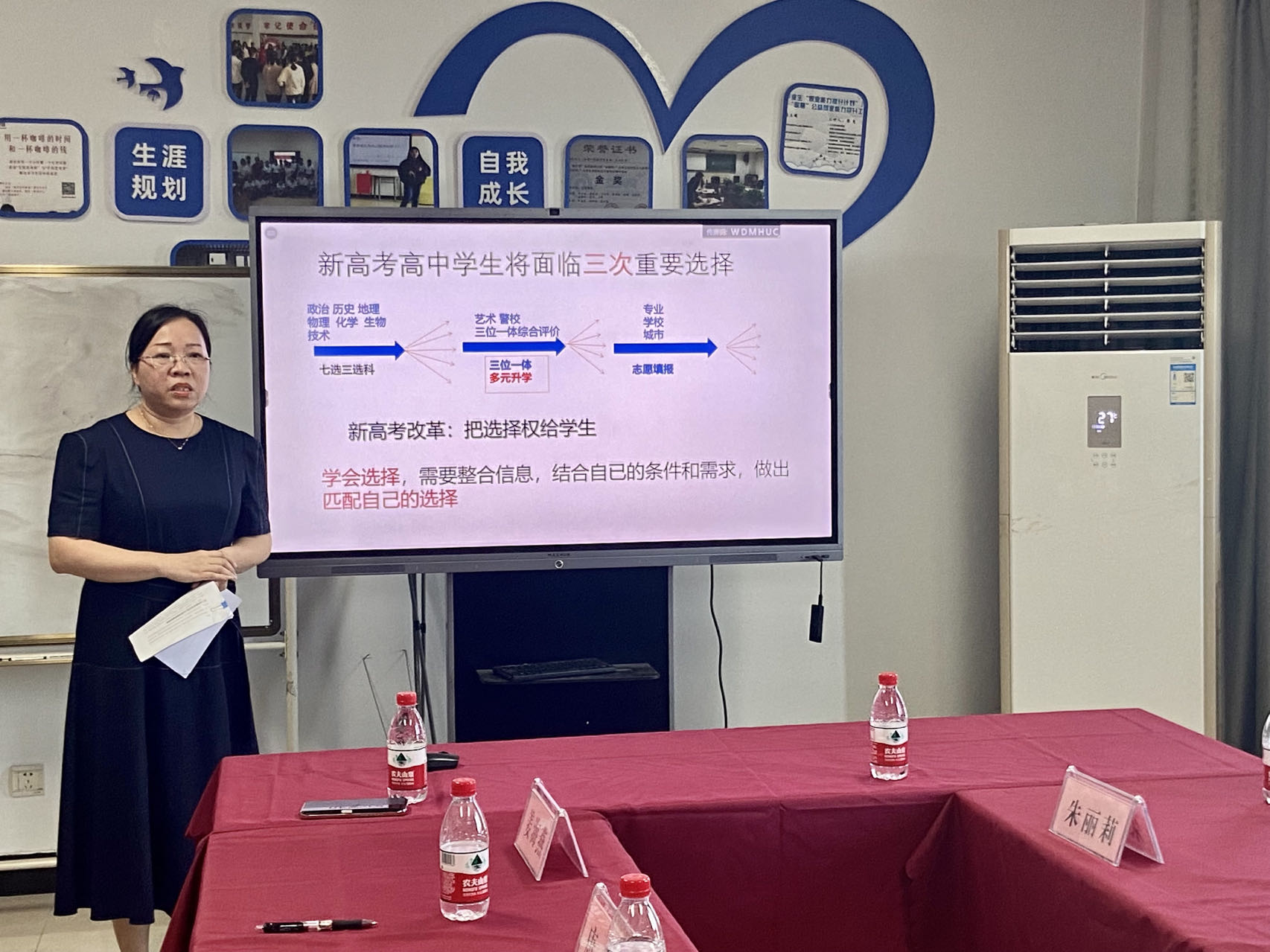 随后,研究中心成员、生环公司党委书记姜海燕分享了《高考新政下的高中学涯规划》,从政策出发,结合数据解析和实际案例,阐明了新高考改革之后,高中生应该如何合理地根据自身特长做好高考科目选择。