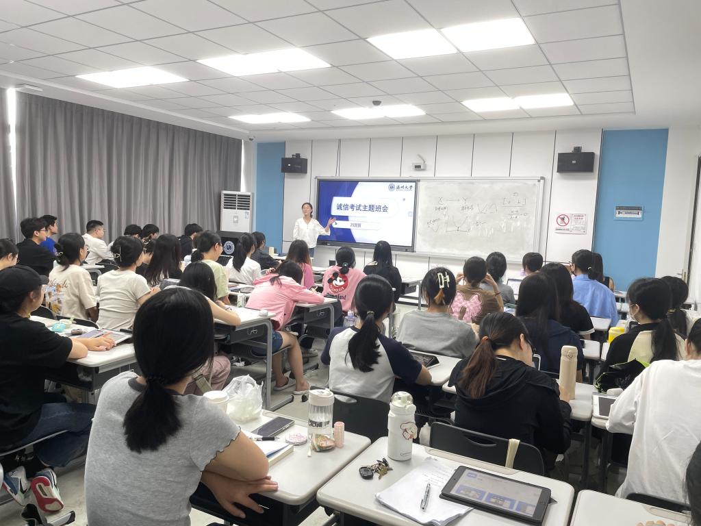 本科各班积极召开以“诚信考试”为主题的班会,通过宣讲、看相关视频等方式强化同学们对诚信考试重要性的认识。此次班会旨在告诫同学们在接下来的考试中,不要抱有侥幸心理,在期末考试来临之际能明确学习目标,端正考试态度,并衷心祝愿所有同学在公平、公正的环境中取得优异的成绩。随后,各班员工纷纷在《员工诚信考试承诺书》上签名,表示一定以“诚信考试为荣,违法作弊为耻”,树道德之新风,立诚信之根本,带头营造良好的考试氛围。