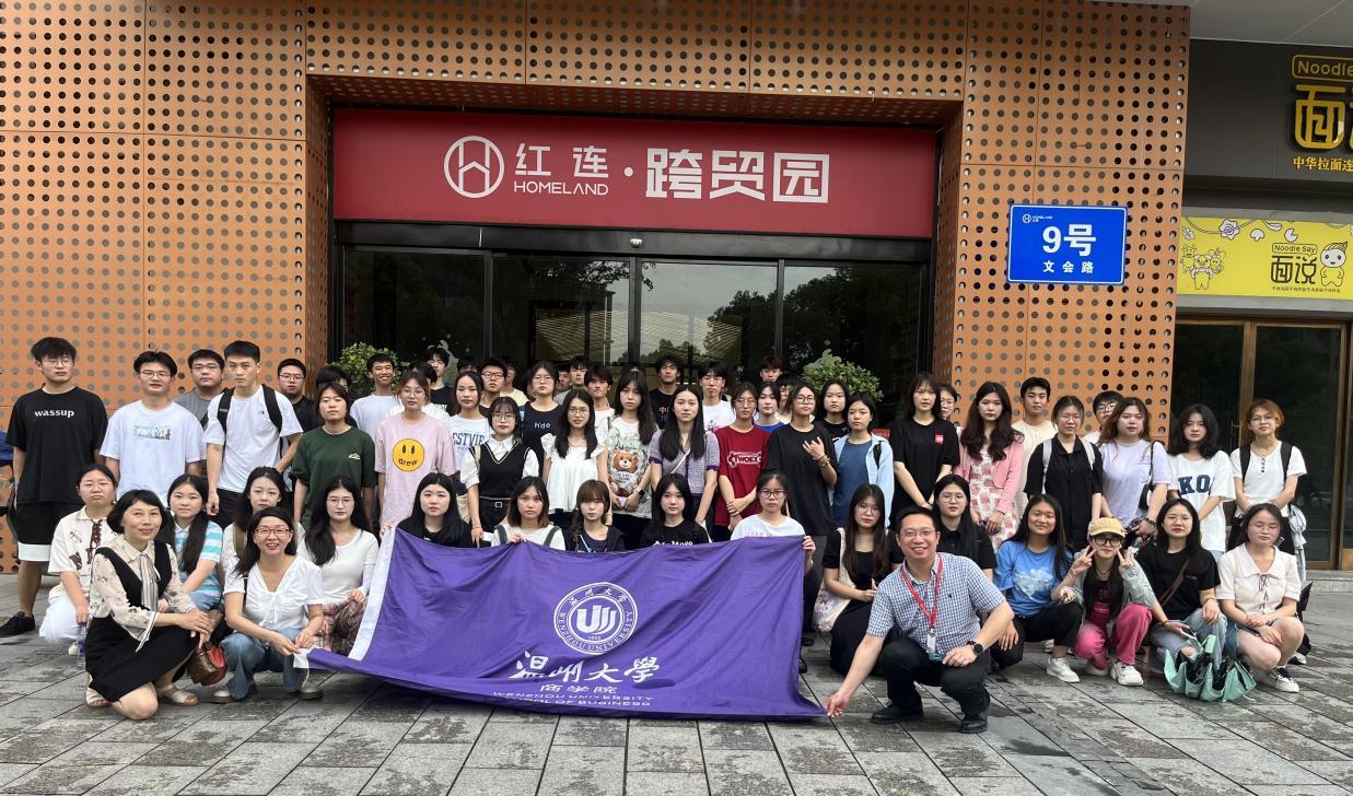 为了进一步了解和学习跨境贸易的有关知识和经验,了解温州跨境贸易合作和服务现状,2022级国际经济与贸易本科专业员工于2023年6月20日在红连跨贸园展开实地考察活动,在红连跨贸园常务副总包攀斌先生的带领下,同学们深入考察了这家浙南新型数字经济产业园,以及共同探讨了这一当前外贸新业态对温州对外贸易的影响。