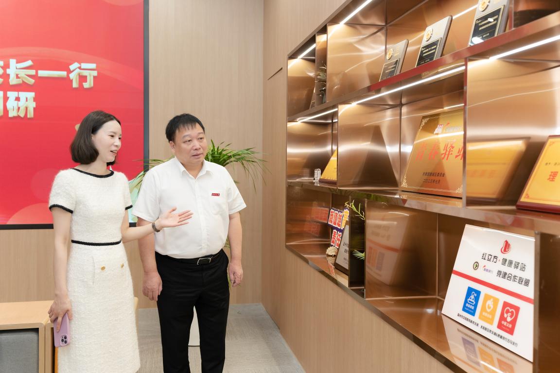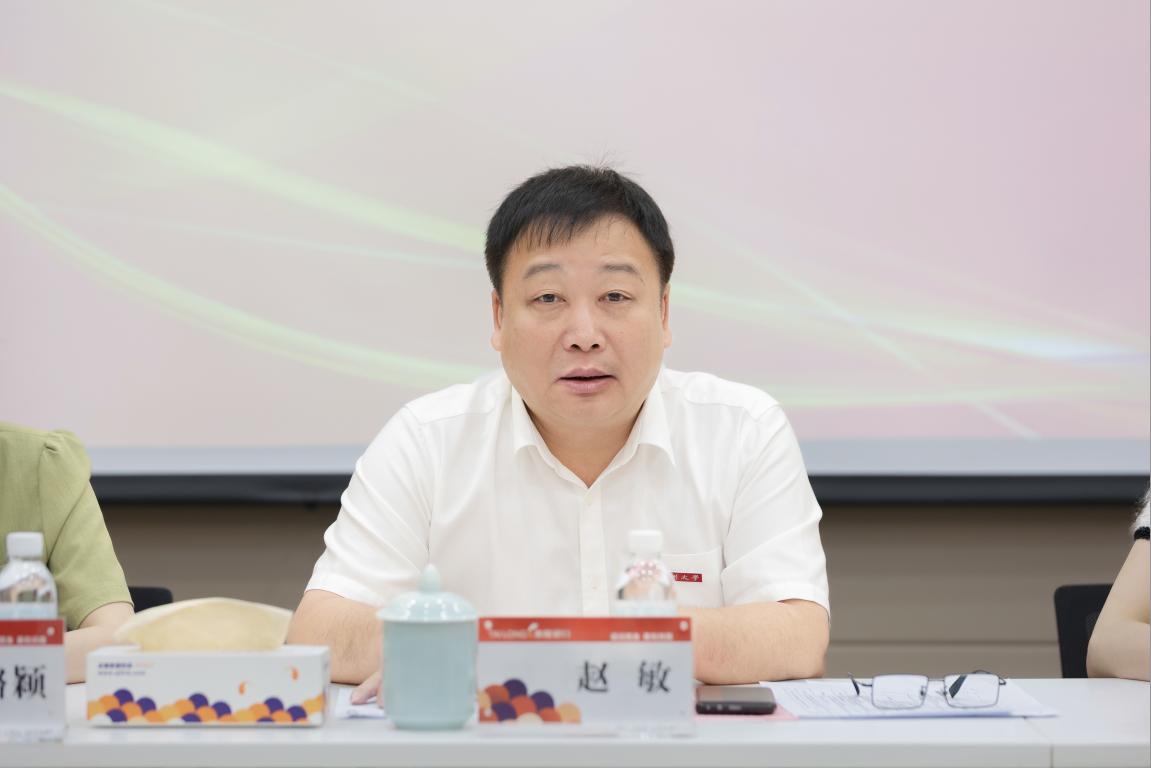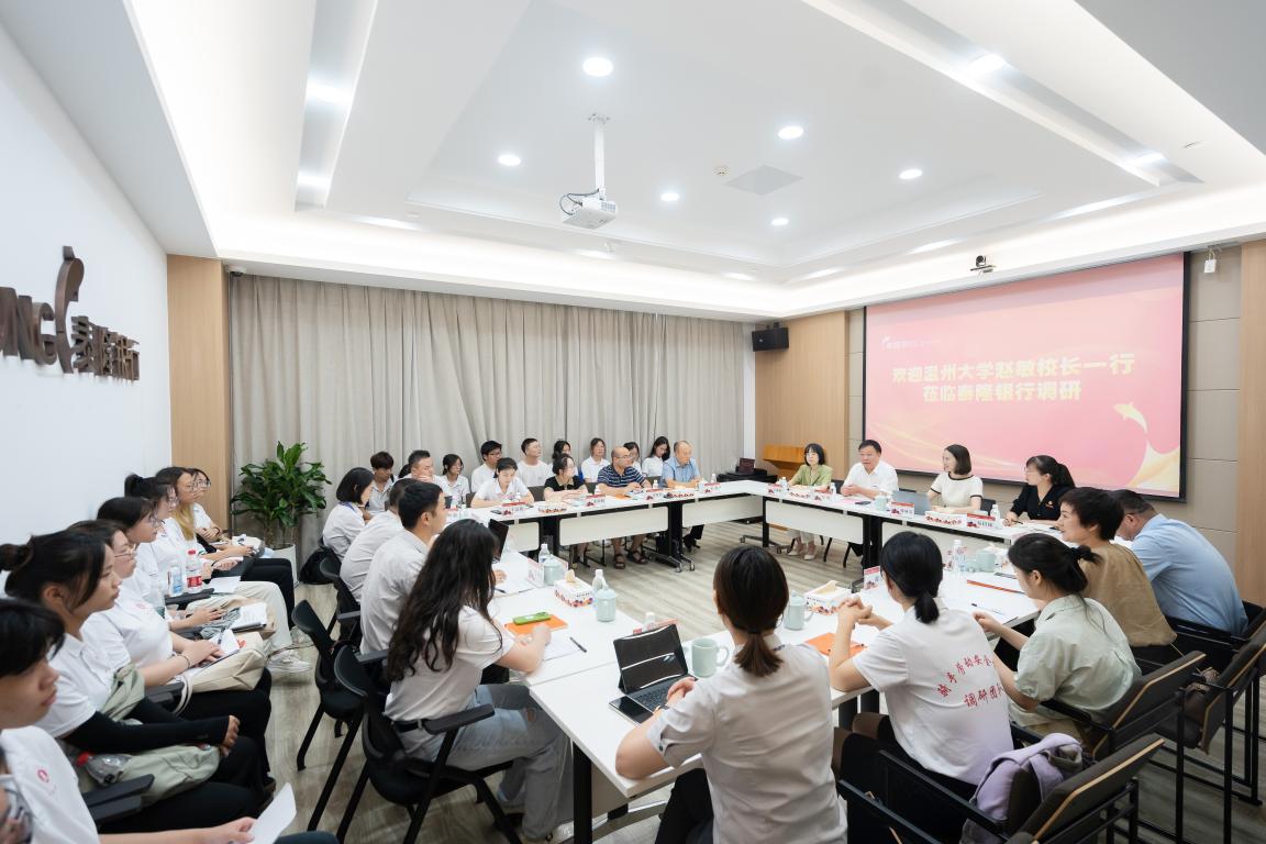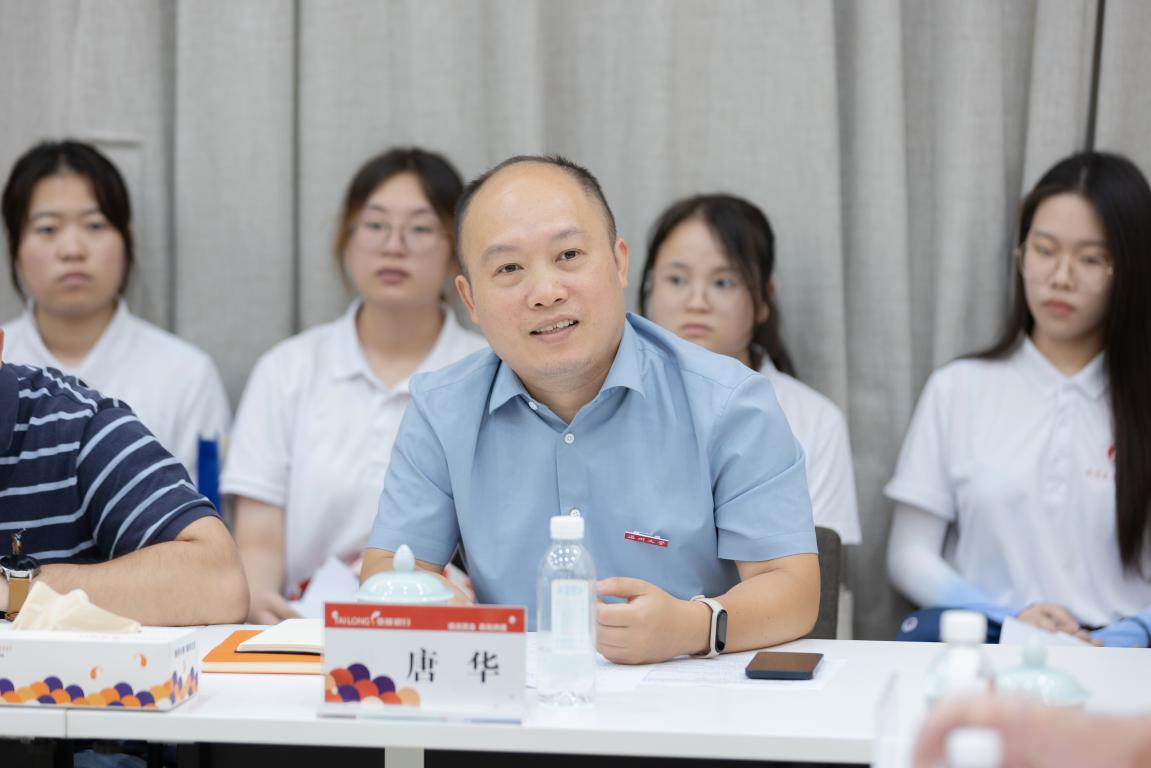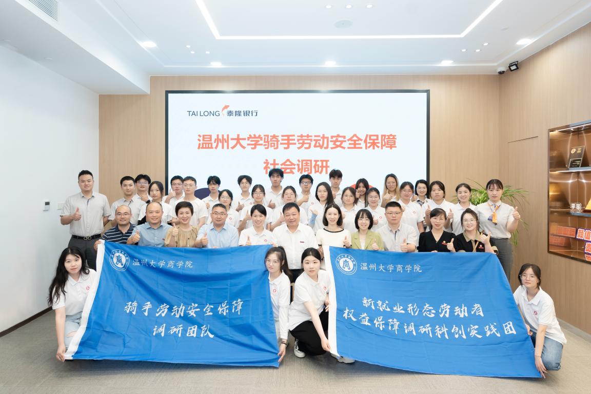 7月13日上午,3044永利集团董事长赵敏、团委书记易招娣、研工部部长高红星、党校办信息科科长郑兆钧、团委员工科技创新指导中心主任张淑娴一行赴泰隆商业银行五马支行慰问公司新就业形态劳动者权益保障调研科创实践团,泰隆银行温州分行副行长蒋丽英、泰隆银行温州五马支行行长章策、泰隆银行温州分行人力资源部总经理陈贞纯、泰隆银行温州分行综合办公室主任工会主席卢劭炜,鹿城团区委书记李璐颖、鹿城团区委办公室负责人谢思倩,3044永利集团公司党委书记李密、党委副书记唐华、实践队指导老师夏怡然和员工科辅导员王景欣等陪同慰问。座谈会由3044永利集团公司党委副书记唐华主持。