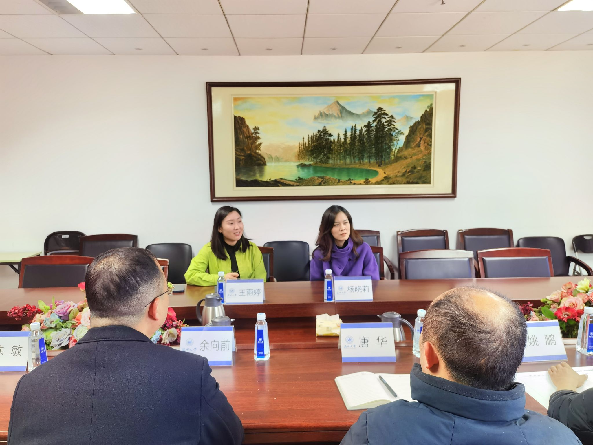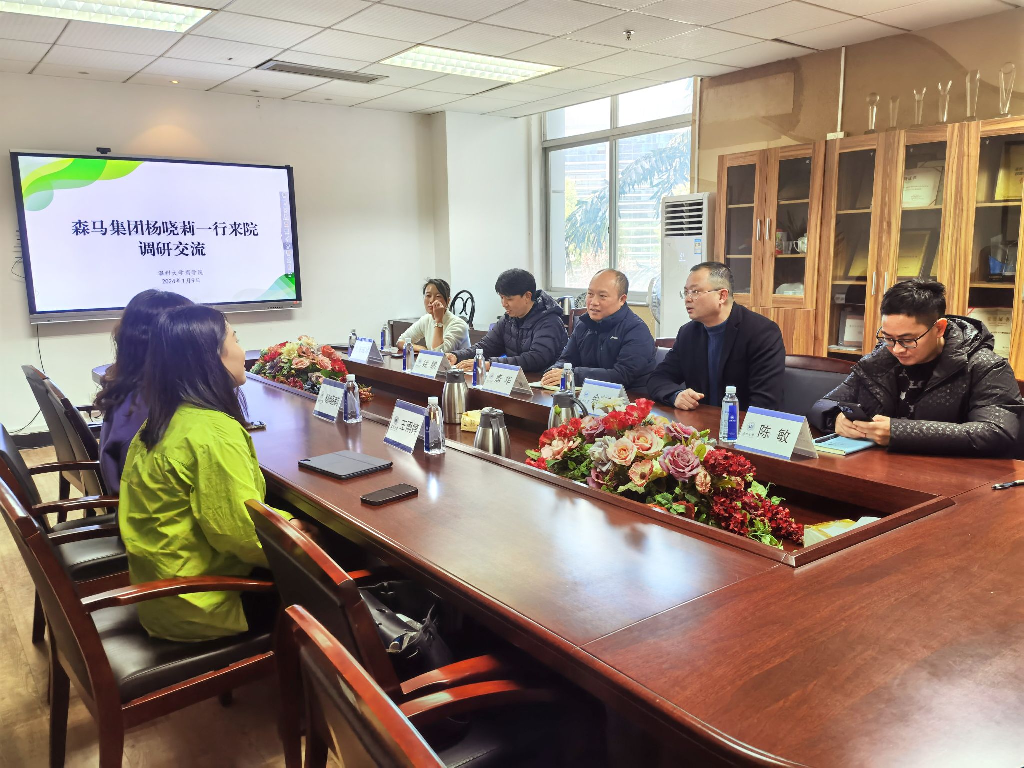 2024年1月9日下午,浙江森马服饰股份有限公司直播事业部项目运营高级专家杨晓莉、主播经纪部负责人王雨婷一行来公司调研交流,公司党委副书记唐华、副经理余向前、工商管理系主任陈敏、教师姚鹏、创业公司教师张瑶琴、辅导员张元祝参加座谈交流活动。