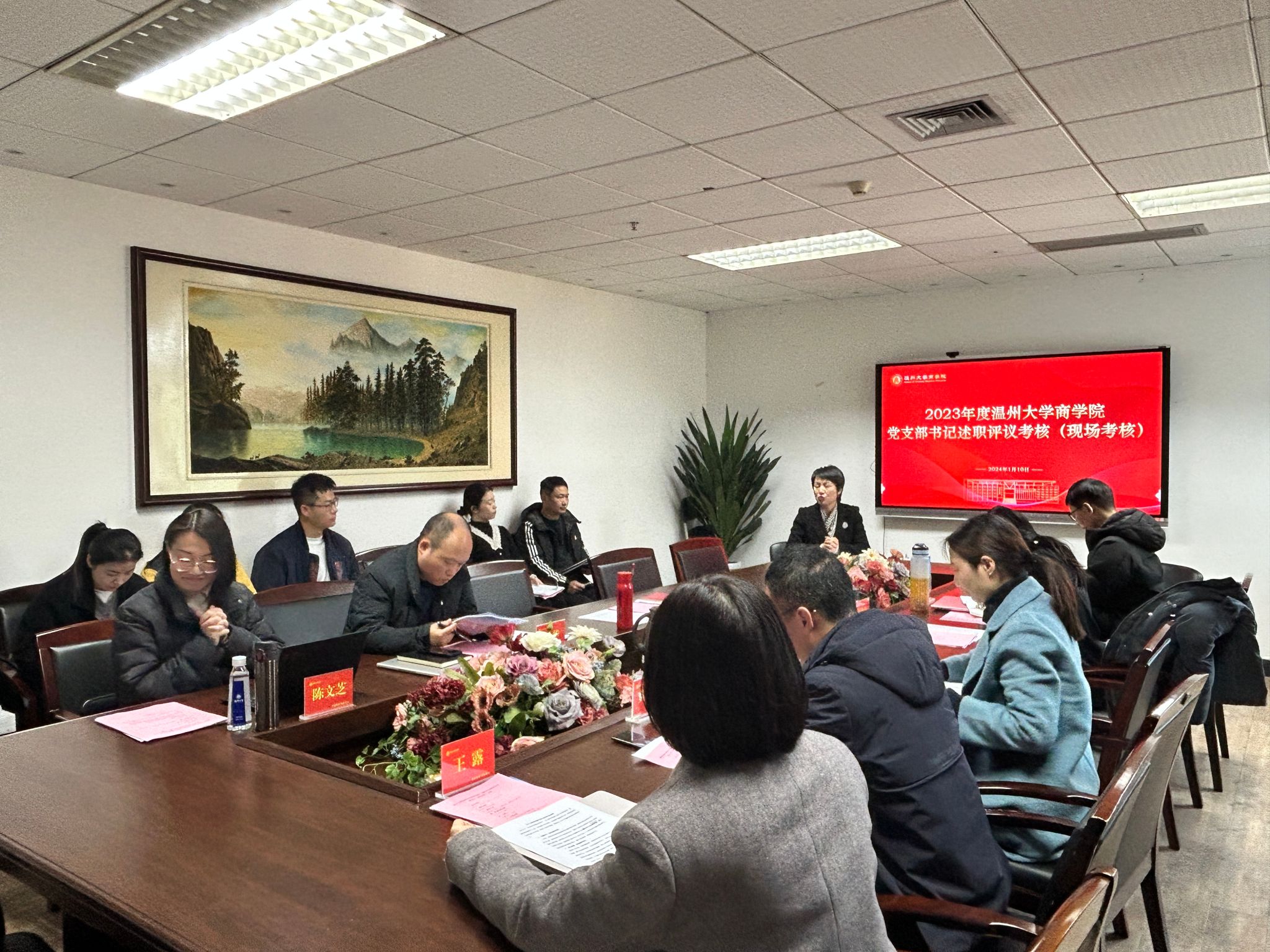 紧接着,13个师生党支部书记分别作述职报告。2023年,公司各师生支部纷纷围绕学习党的二十大精神、习近平总书记系列讲话精神、践行“八八战略”、“循迹溯源学思想促践行”、金融教育基地建设等主题,开展了形式多样的学习和活动。各支部书记逐一介绍了本支部工作的亮点和成绩,同时结合本支部党建工作中的薄弱环节和突出问题,如党建活动形式单一、党建与学科专业融合不深入、党员组织关系未及时接转和落实等,查找自己在履职尽责方面的差距和不足,并提出有针对性的解决措施和办法,明确2024年党支部建设的努力方向和目标任务。13个师生党支部书记述职之后,现场评议,评选出4个表现突出的党支部。