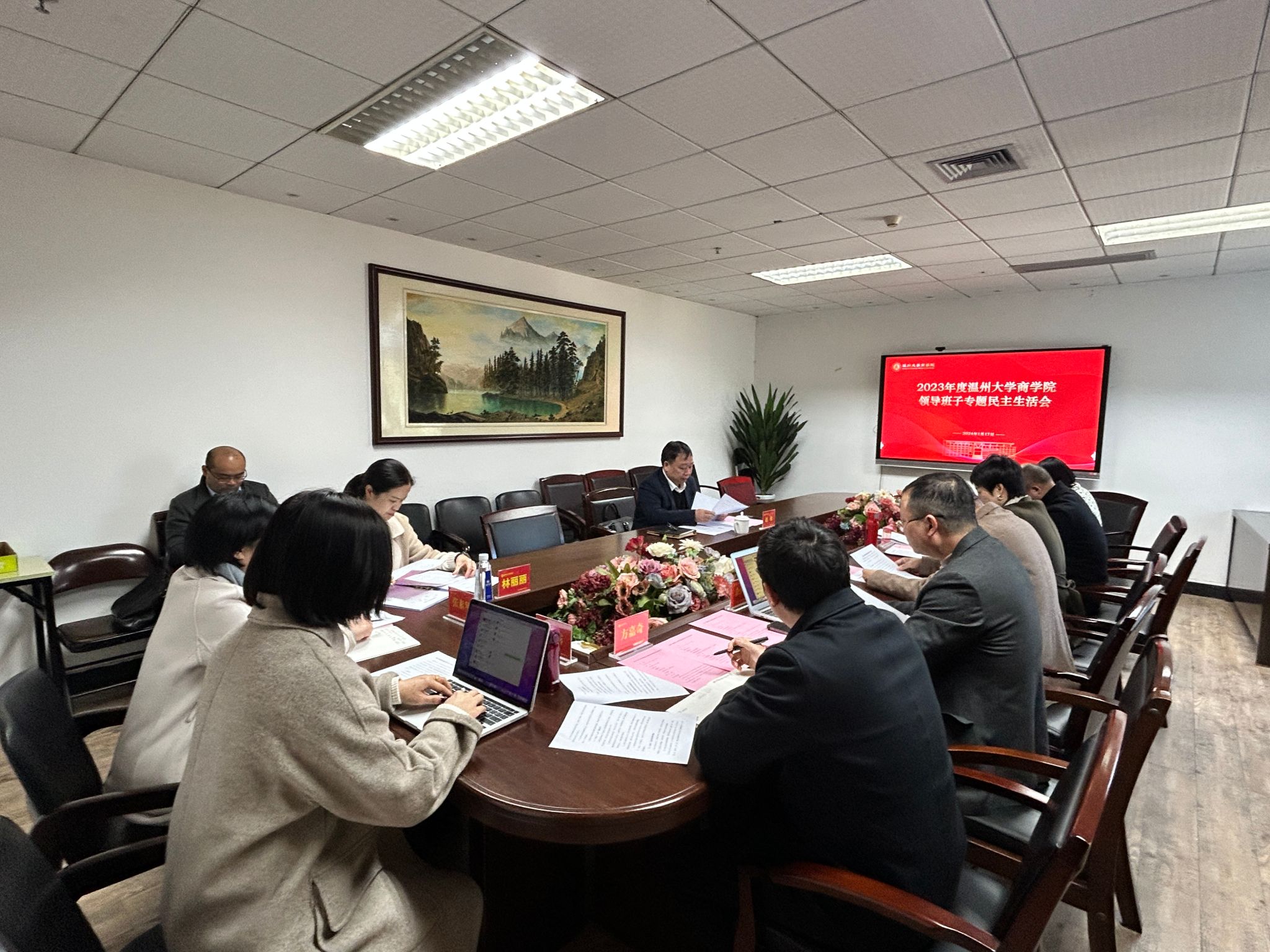 2024年1月17日下午,公司领导班子在公司A222会议室召开专题民主生活会,董事长赵敏全程参加会议作指导并讲话,督导组成员林丽丽、民主党派代表余向前副经理、纪委委员张素琴、教师代表方嘉奇博士、王露博士列席会议。