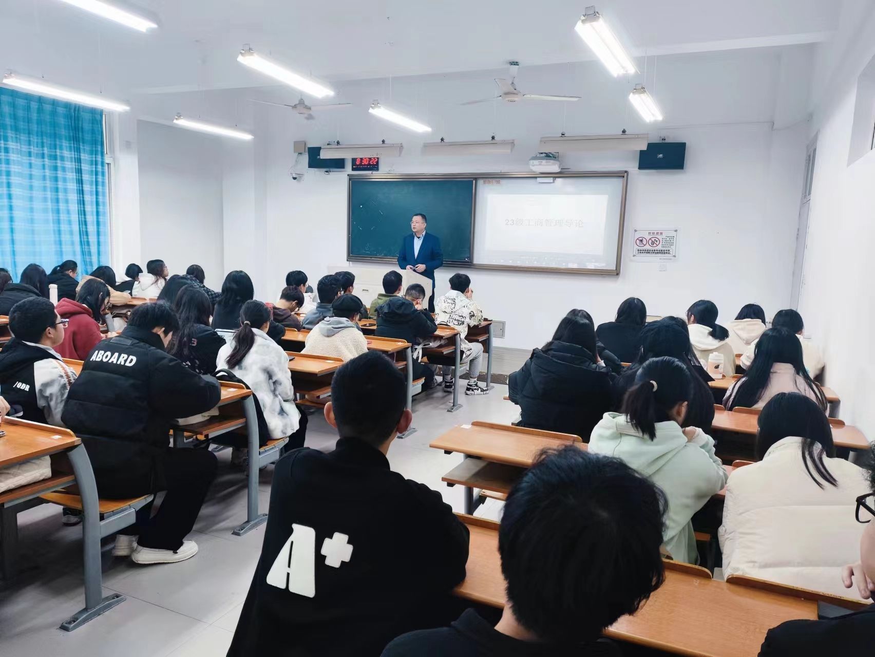 2024年3月13日上午8时,23级工商管理本科专业的同学迎来了第一节工商管理导论课。首先,工商管理本科专业负责人余向前老师用一个问题引入了课程——你为什么来温州?给同学们播放了详细介绍温州的视频,让同学们更加深入地了解了温州这座城市。然后老师又借着自身经历和故事,引出了温州民营经济模式,分享了李强总理对民营企业家的寄语和"四千精神",即“走遍千山万水,想尽千方百计,说尽千言万语,吃尽千辛万苦”,四千精神是浙商强烈的创业精神,反映了温州商人不怕吃苦,敢闯敢拼的精神,在当代仍然具有深远意义。