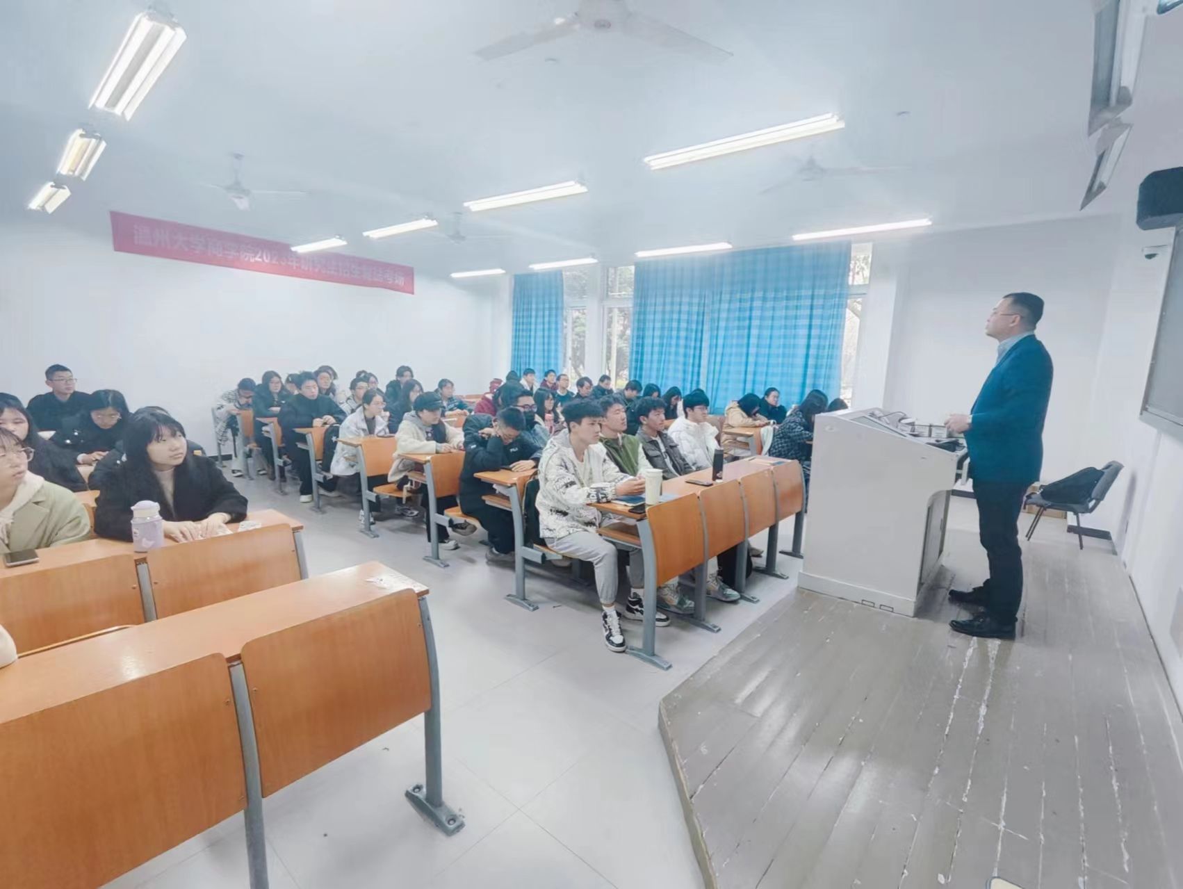 最后,余向前老师从专业培养方案,专业老师介绍方面让同学们对本校工商管理专业有了更加全面详细的了解,构筑起了学科自信心。希望23工商管理的同学能在本次课程后,拥有更加清晰全面的生涯规划,拥抱更加美好充实的老员工活,扬帆起航!