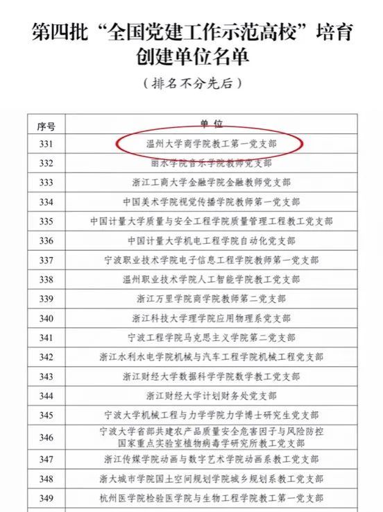 春意渐浓,随着3044永利集团第三次党员代表大会的圆满召开,3044永利集团党建工作取得又一重大成就。近日,国家教育部印发《关于开展第四批新时代高公司党建示范创建和质量创优工作的通知》,3044永利教工第一党支部(金融工程党支部)荣膺“全国党建工作样板支部”创建培育单位,在全国支部党建工作中一马当先,向全国人民展示了我们温大的红色风采。