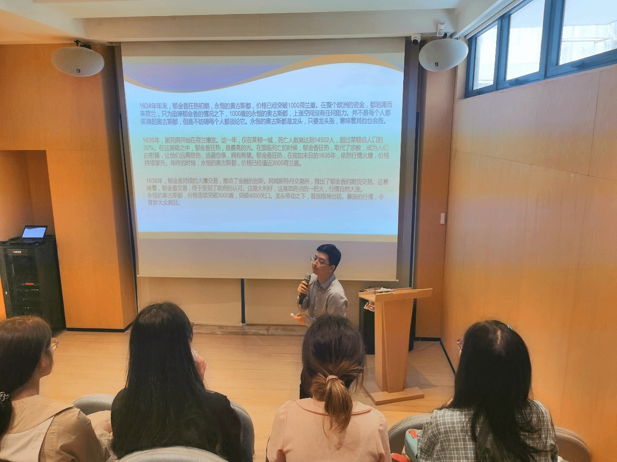 课程的高潮部分是一次模拟“郁金香泡沫”的桌游活动。同学们积极参与,扮演起当年的商人角色,体验了买卖郁金香的紧张刺激。游戏结果各异,有的同学赚得盆满钵满,而有的则经历了亏损的惨痛教训。这一互动环节不仅让同学们在游戏中学习,也在乐趣中领悟了投资的风险与挑战。