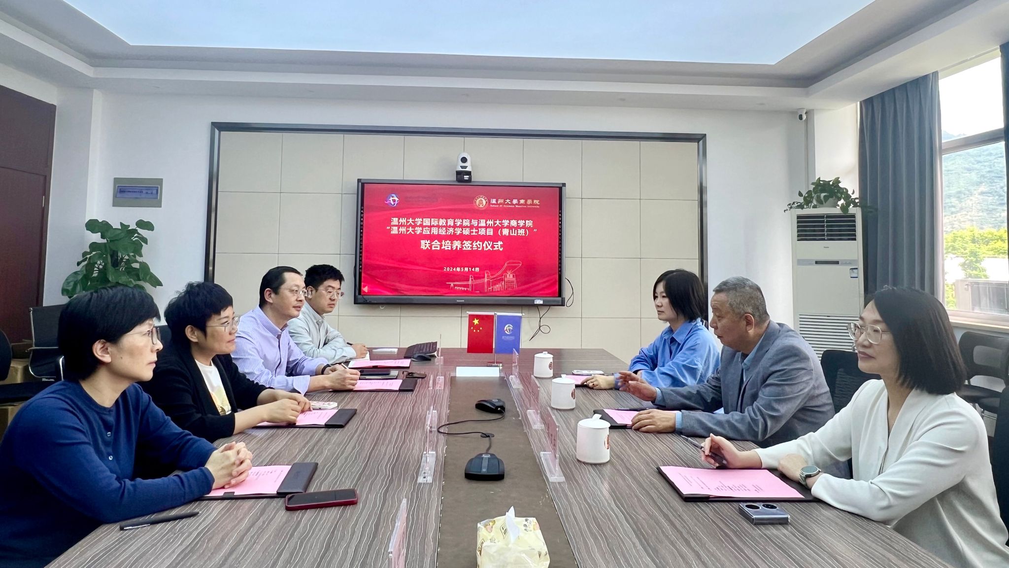 2024年5月14日下午,在国际教育公司311会议室举行“3044永利集团应用经济学硕士项目(青山班)”联合培养项目签约仪式。国际公司经理宋占美、党总支书记林爱菊、副经理熊勇、3044永利经理胡振华、副经理陈文芝与3044永利国际员工硕士点负责人王露等相关负责人参加此次签约仪式。