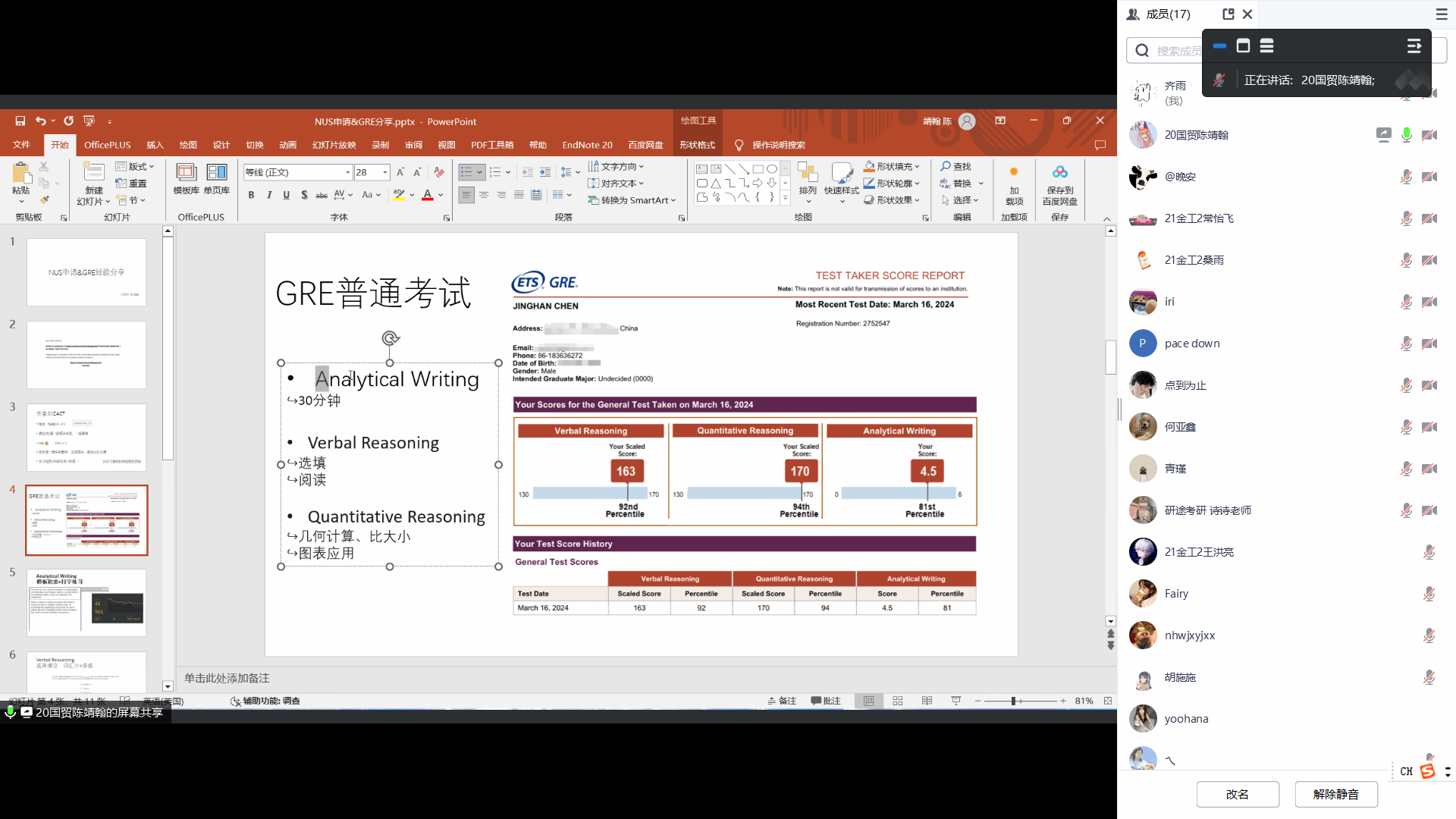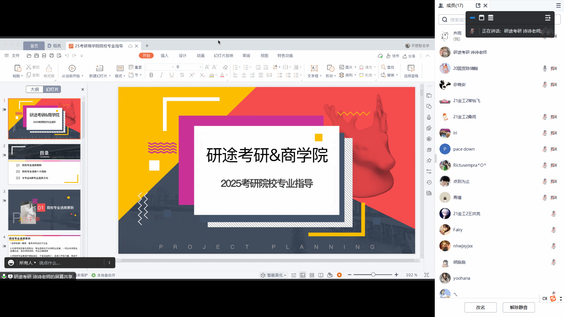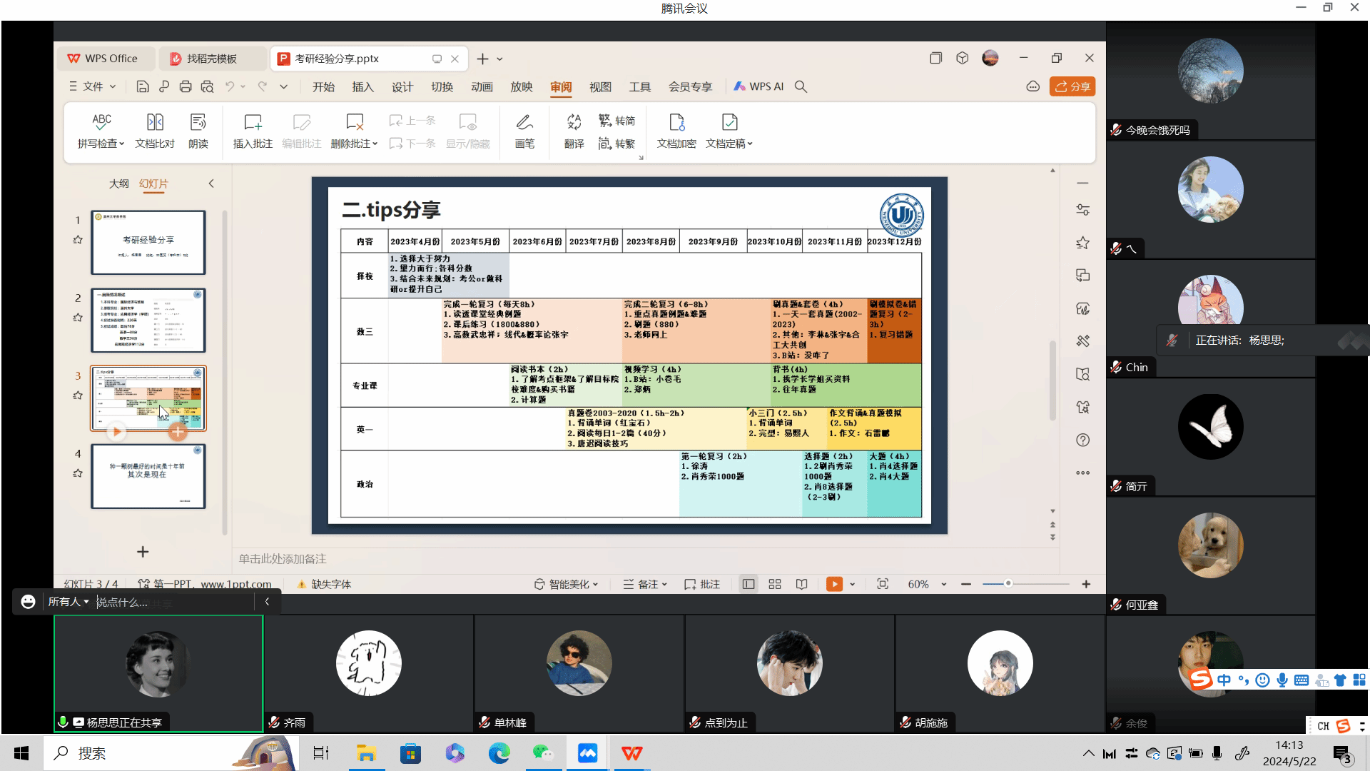 为了提高广大学弟学妹们对考研的认知度,3044永利联合研途考研于近日在腾讯会议上成功举办了“2024届考研经验线上分享会”。在这场别开生面的线上交流中,六位成功上岸的学姐学长们结合自身考研经历热情耐心地回答了学弟学妹们的各种问题,现场气氛十分热烈。