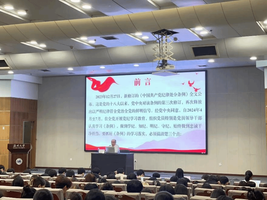 随后,唐华书记详细解读了新修订《条例》中的六大纪律,包括政治纪律、组织纪律、廉洁纪律、群众纪律、工作纪律和生活纪律。他通过对其中“不作为、假作为”“反对特权思想和特权现象”“信仰宗教”等条例的详细分析,让同学们深刻认识到违反纪律的严重后果,并引导大家自觉遵守党的纪律,维护党的团结统一。