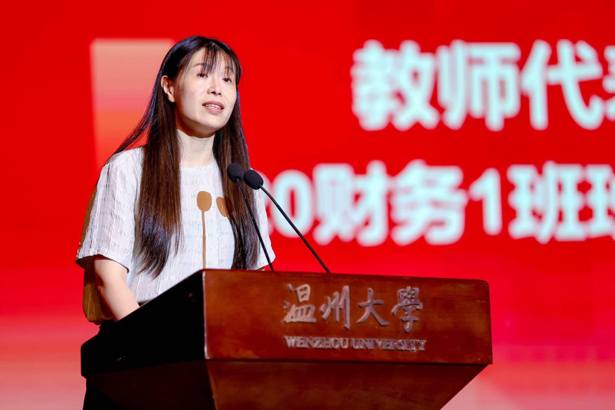 20财务管理1班班主任王钰老师作为教师代表发言,她首先代表所有班主任向毕业生们表达了热烈的祝贺,并对辛勤付出的教师们表达了崇高的敬意。王钰老师深情地回顾了员工们四年的学习生活,从最初接触看似艰涩难懂的经济定理,到沉浸在生动的管理案例学习之中,再到深刻感悟中国百年复兴的艰辛与辉煌,这些经历都化作了员工们心中宝贵的财富。她引用“得其大者可以兼其小”的古语,鼓励员工们把人生理想融入国家和民族的事业中,持续学习,知行合一,勇担新时代青年人的责任与使命,为祖国的发展贡献自己的力量。同时,她又以“积水成渊,蛟龙生焉”为喻,祝愿同学们在未来的日子里,能够如鱼得水,入海为龙。