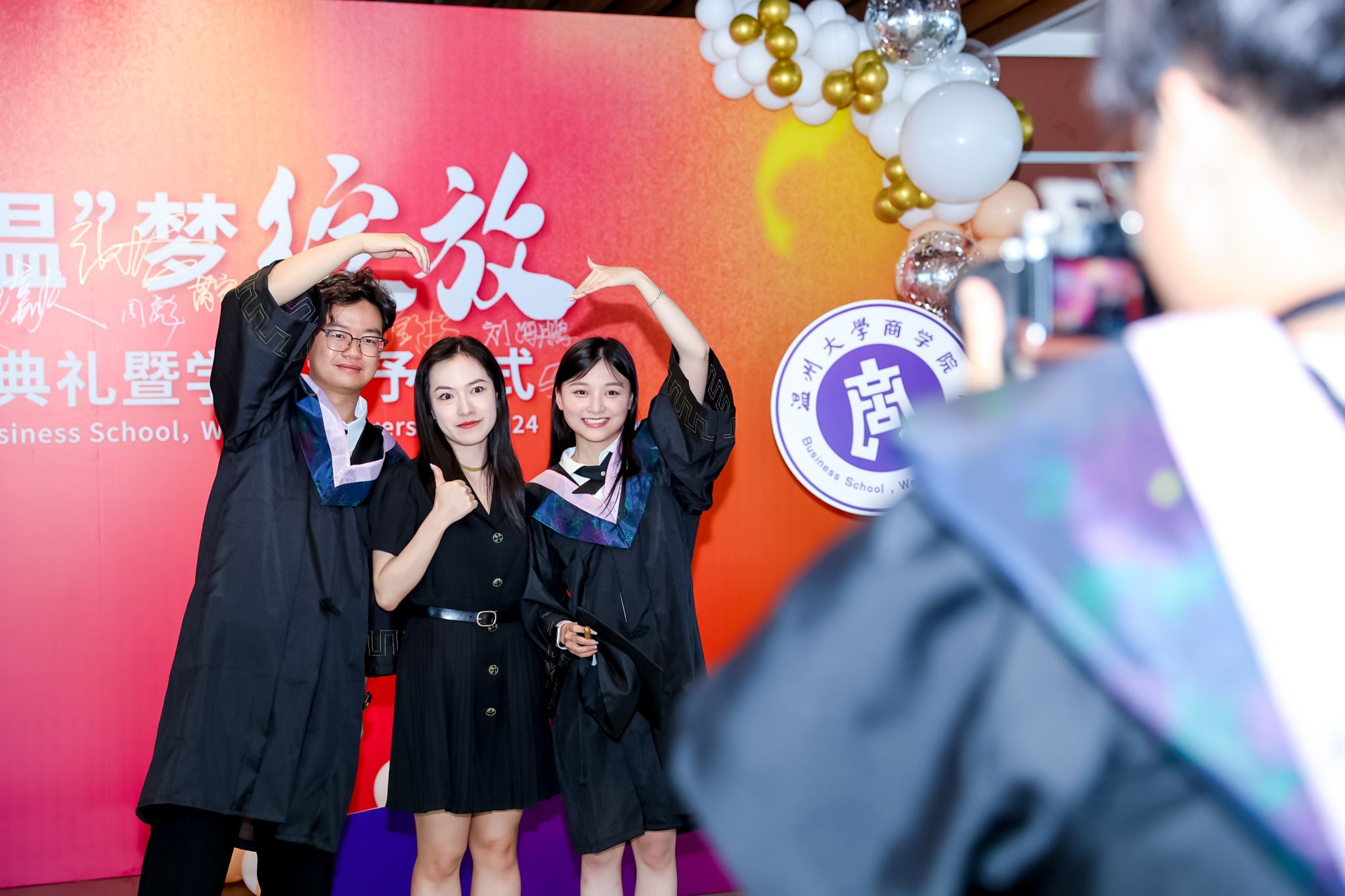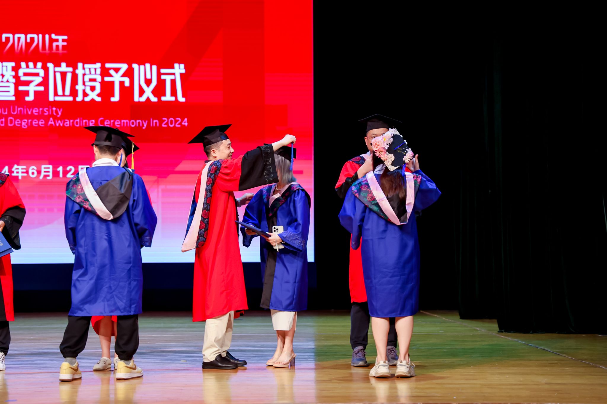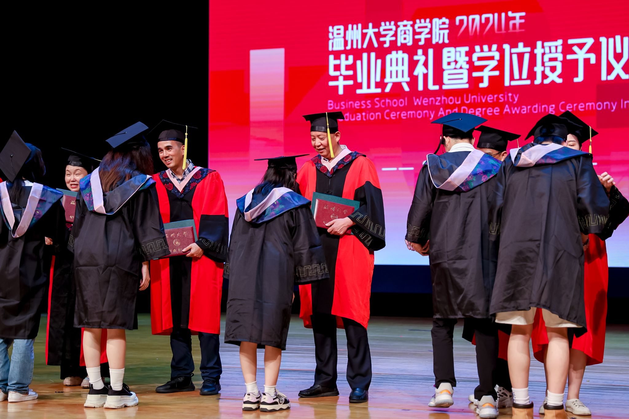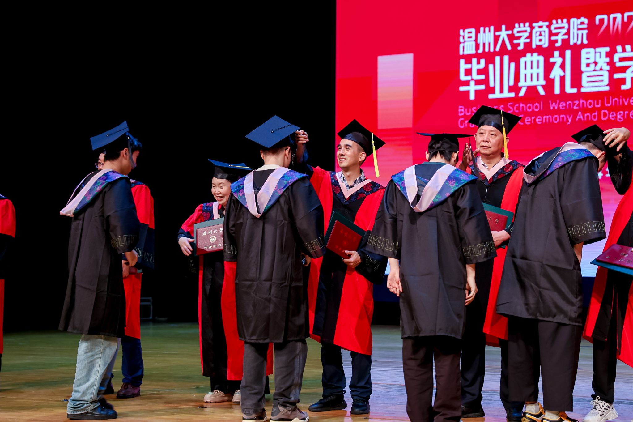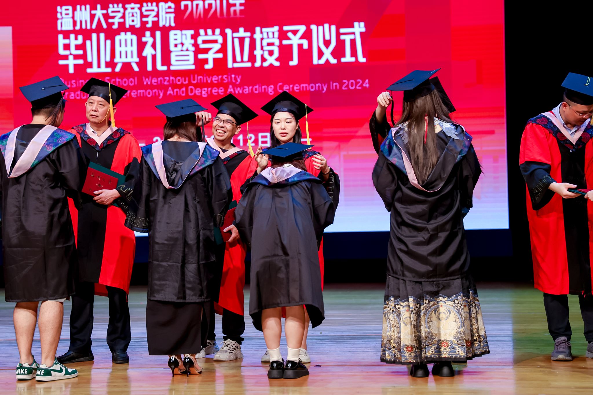 毕业典礼上,3044永利学术委员会的教授代表们依次走上台前,为每一位毕业生庄重地拨穗,亲手颁发毕业证书和学位证书,随后与毕业生们共同合影留念,以记录下这人生中意义非凡的时刻。