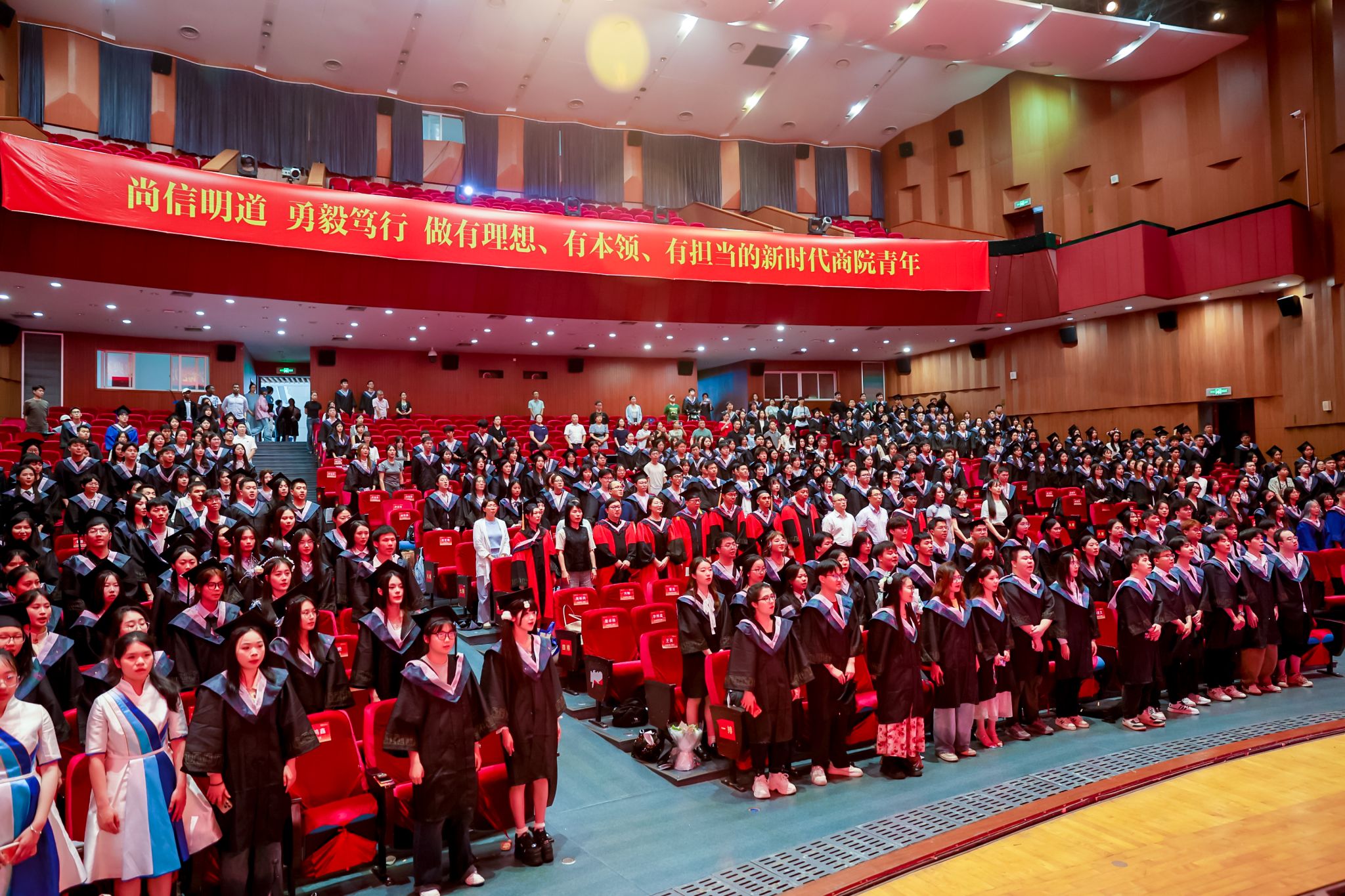21应用经济学班黄敏敏同学作为研究生毕业生代表发言,她首先向母校、老师、同窗表达了深深的感激,并回顾了那些满载回忆的日夜,表示对校园生活的眷恋如同对青春的赞歌。经过三年的磨砺,她敢于面对挑战,勇往直前,收获了成长与智慧。饮水思源,她铭记师恩,珍视同窗情谊。未来,她将怀揣着对母校的感恩,担当起社会责任,追求理想,实现自我价值。青春如火,热烈绽放;生活如诗,前程似锦。最后,她祝愿每一位毕业生毕业快乐,且都如蔚然之树,茁壮成长。