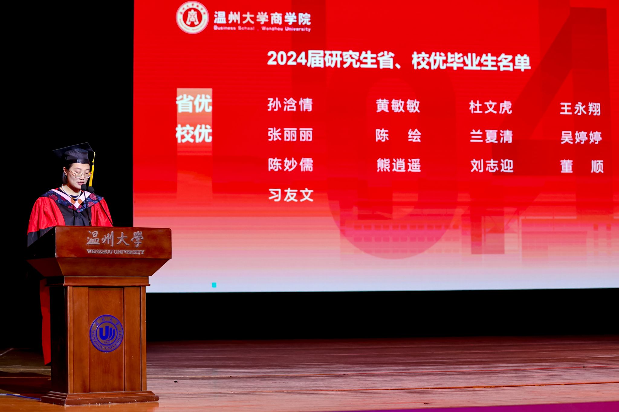 副经理陈文芝宣布2024届浙江省普通高等公司优秀毕业生及2024届3044永利集团优秀毕业生名单。