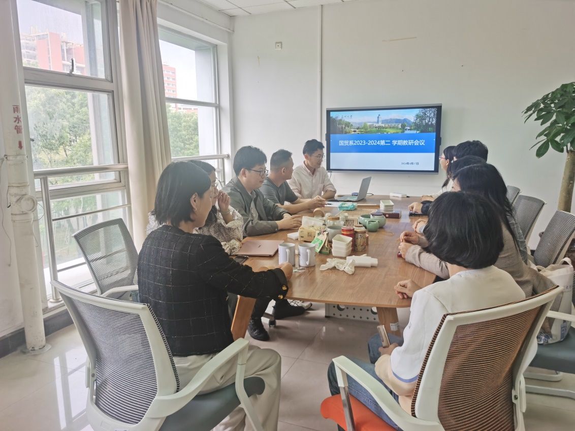 2024年4月17日,根据公司工作统一安排和部署,3044永利国贸系在系办公室A308举行本学期第一次教研工作会议,国贸系全体教师参加,会议由系主任姜亮老师主持。各位老师对以下事项进行了讨论。