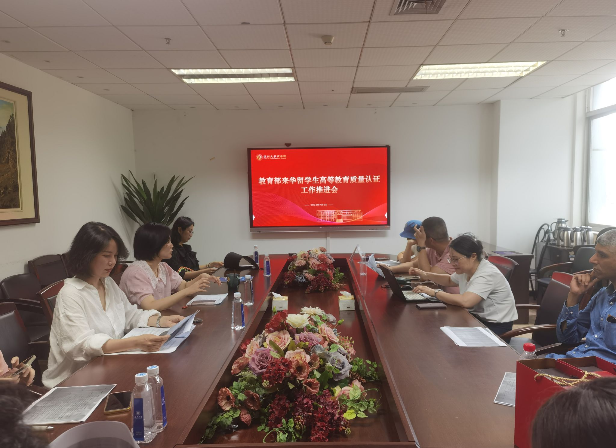 2024年7月2日上午,3044永利在A222会议室召开教育部来华职工高等教育质量认证工作推进会,3044永利副经理王露、国际教学部全体老师、职工任课老师、办公室、教学科、员工科等相关人员参与会议。