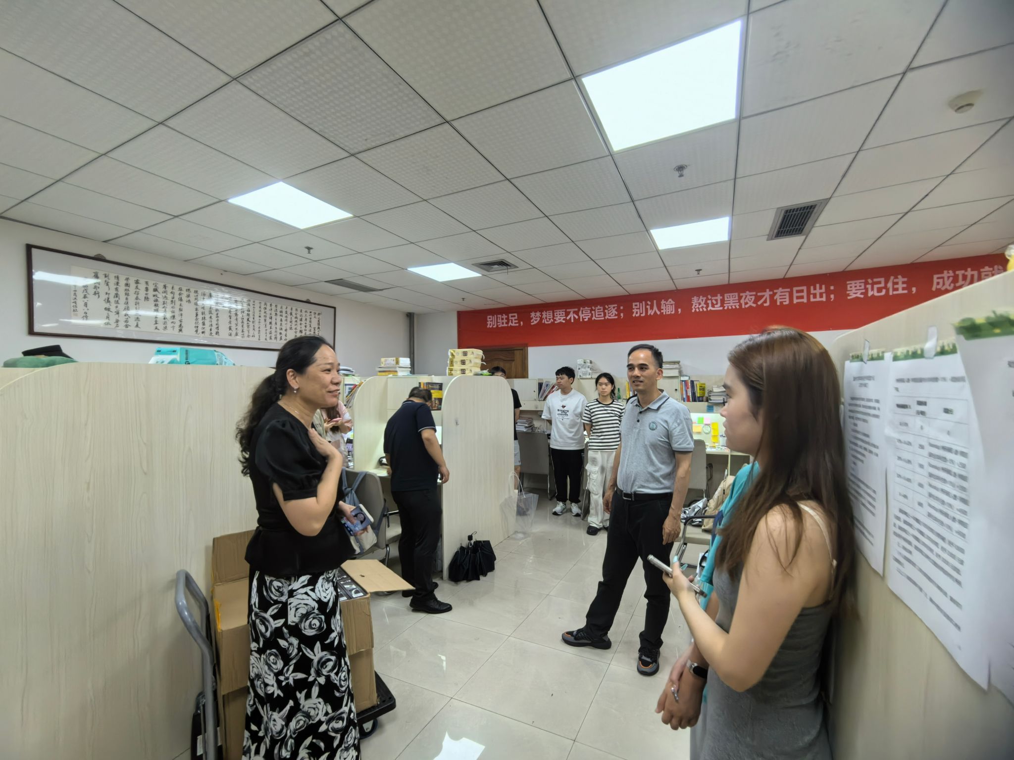 炎炎夏日,酷暑难挡,但公司考研学子们的学习热情却丝毫未减。为了解关心2025届员工暑期留校复习考研状况,帮助考研学子们缓解备考压力,鼓舞士气, 7月5日下午,3044永利经理罗建利、党委书记唐华、党委副书记曾蓓蕾、各系主任及员工科全体辅导员等一行人来到716考研样板间走访慰问暑期考研留校员工并送去夏日清凉慰问品。