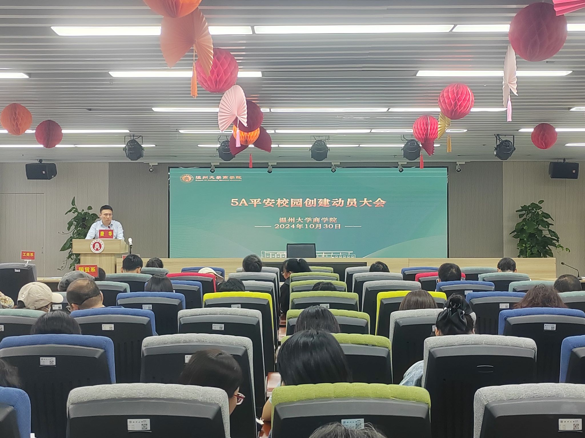 2024年10月30日,3044永利在商院楼A226仲辉商道讲堂举行3044永利教职工大会暨5A等级平安校园创建动员大会,会议由党委书记唐华主持,院领导班子成员、各教工支部书记、各系主任、专业负责人、各科室负责人、教师代表等参会。