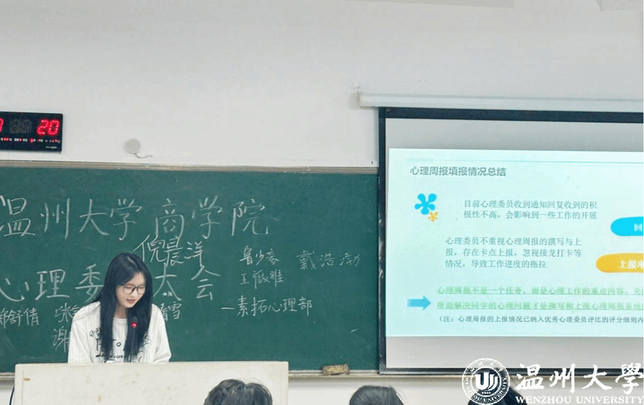 紧接着,素拓心理部部长陆佳乐示范心理周报系统的填报以及校内外登录的路径。心理周报不仅是记录员工心理健康状况的工具,也是心理委员及时发现问题、提供支持的有效途径。心理委员们通过使用系统,能够更有效地了解同学们的需求,提高心理健康教育活动与服务的针对性和有效性。