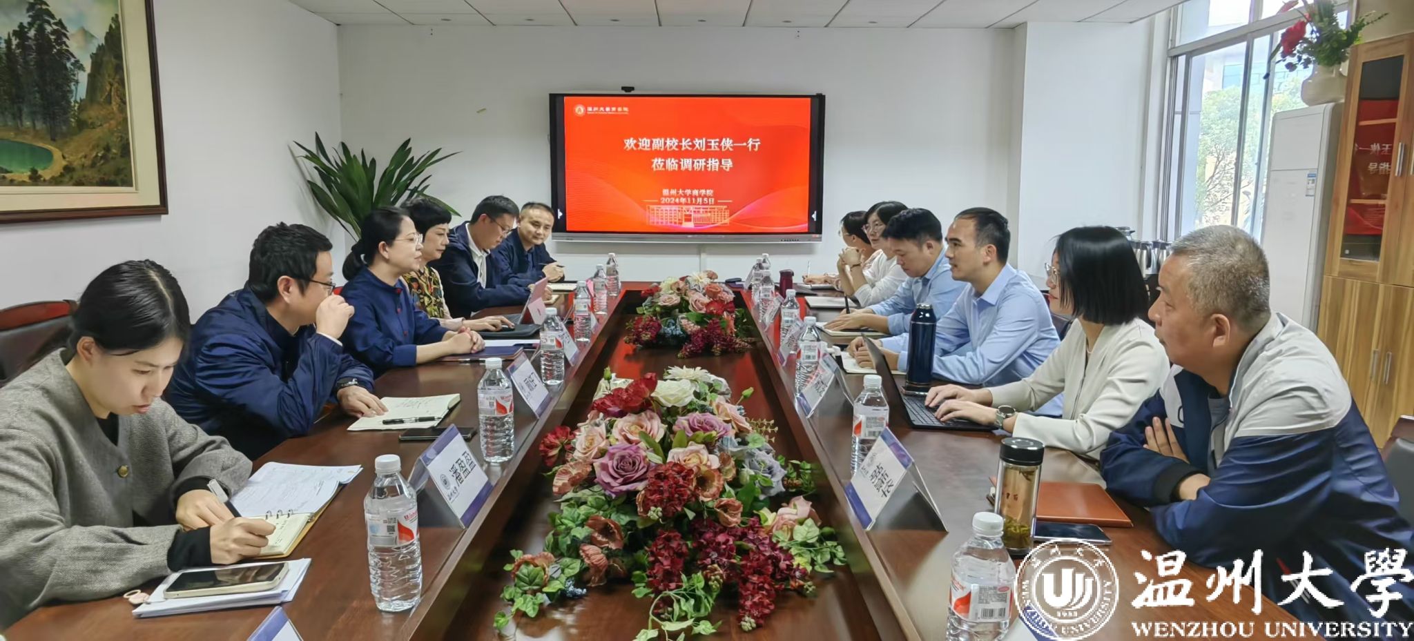 刘玉侠副董事长认真听取了公司工作汇报,充分肯定公司在团队建设、申博方面所做的准备。刘玉侠副董事长强调,申博工作是公司提升办学层次、增强综合实力的重要途径。她指出要系统谋划,凝聚整合全校资源,加强标志性成果建设;同时要扎根地方建设,以“温州学”研究为切入点,进一步凝练公司学科特色。最后,她勉励公司全体教职工在谋事创业中要勇于担当,不畏困难,共同奋斗。
