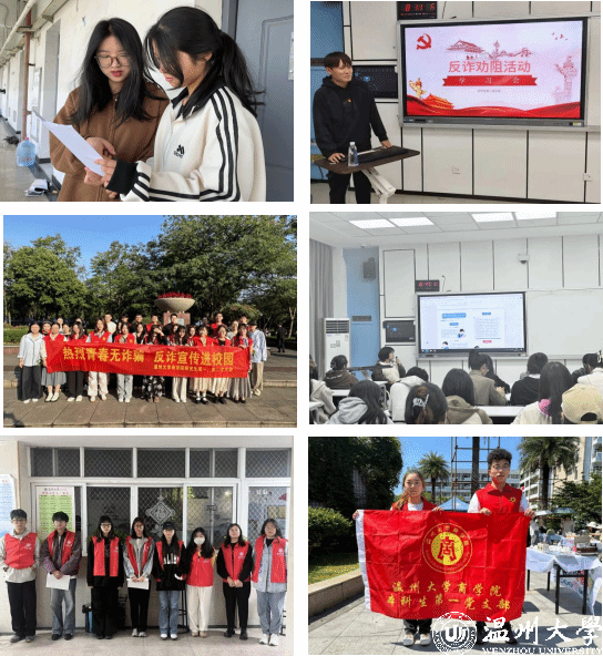 公司各员工党支部积极开展活动,本科生第一党支部深入宿舍区发放宣传单,讲解网络诈骗等热点问题;本科生第二党支部在广场和宿舍开展宣传活动,传授诈骗手段识别方法;本科生第三党支部由支部书记讲解真实案例,提醒同学们提高警惕;本科生第四党支部结合党日活动,邀请入党积极分子代表解读《防范电信网络诈骗宣传手册》;本科生第五党支部组织志愿者进入宿舍,讲解金融反诈知识;研究生第一、二支部在招聘会现场开展“金融防诈”宣讲活动,提升同学们的防范意识。