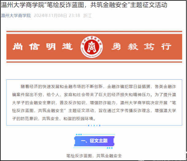 此外,公司研究生会还策划了“笔绘反诈蓝图,共筑金融安全”主题征文活动和“智防金融诈骗,共筑安全防线”宣传海报征集活动,通过文字和视觉艺术传播反诈理念,增强员工的防范意识,扩大活动影响力。