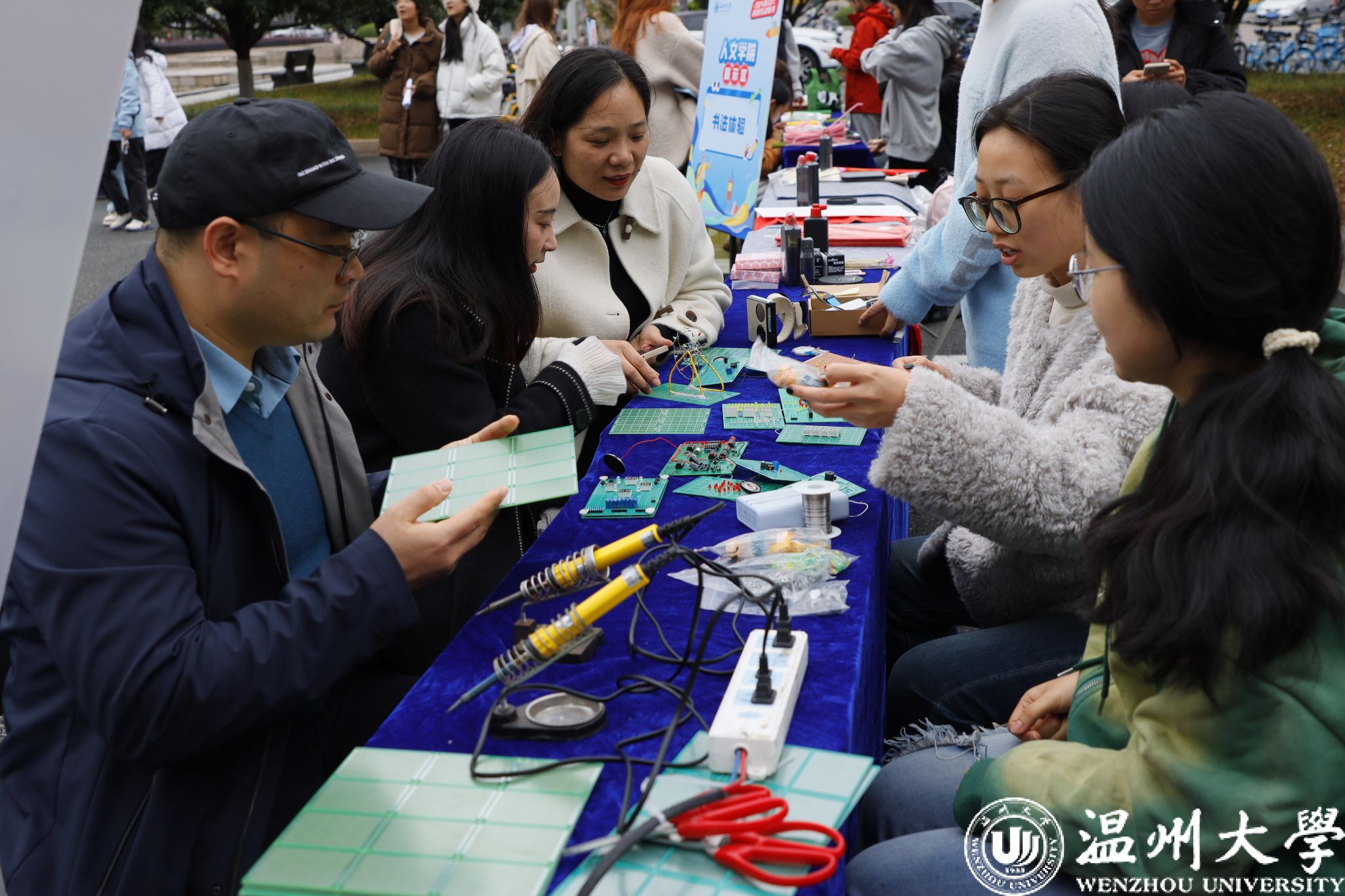 电气与电子工程公司员工团队,带来了公司特色的电路板供各公司师生共同参与,吸引众多师生驻足体验,展现出科技与生活紧密结合的创新理念。