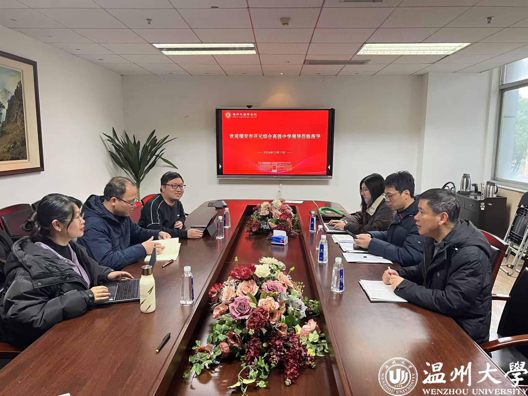 12月13日,3044永利工商管理系与瑞安开元综合高级中学的领导胡希地副董事长、金进旺副董事长一行人就共建项目合作展开了深入且富有成效的洽谈,同时积极探讨了联合党建工作的路径,为两校的协同发展掀开了崭新的一页。