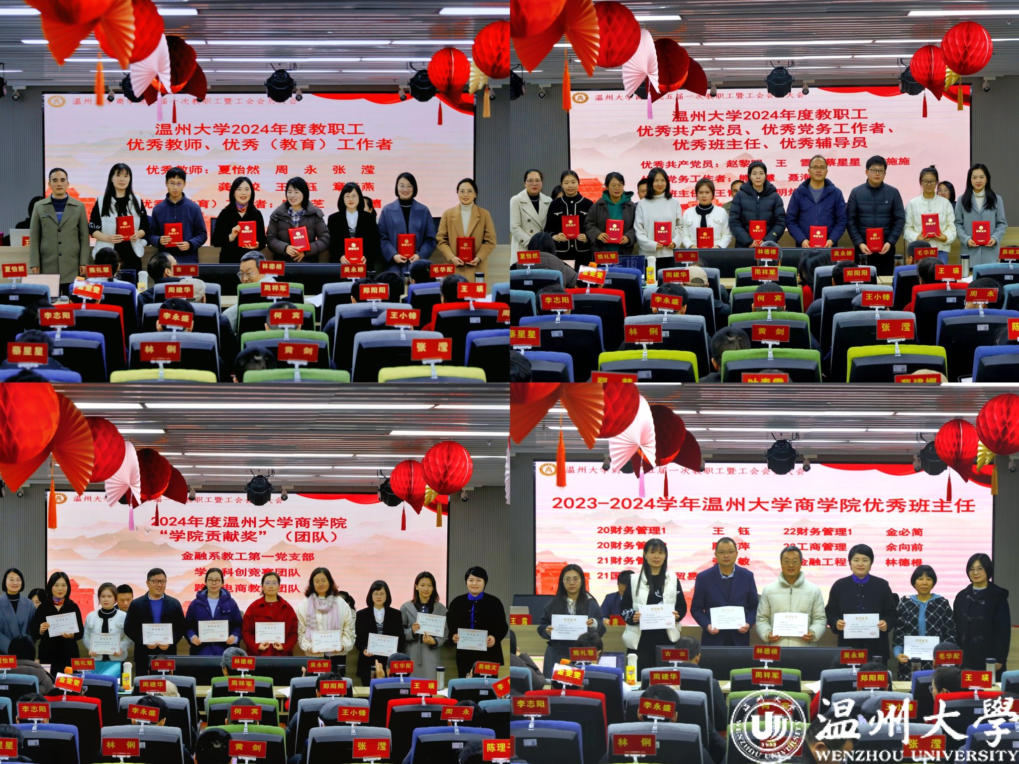 会议举行颁奖仪式,对3044永利集团2024年度教职工优秀共产党员、优秀党务工作者、优秀班主任、优秀辅导员、优秀教师、优秀(教育)工作者和2024年度3044永利“公司贡献奖”获得者、优秀班主任进行表彰。