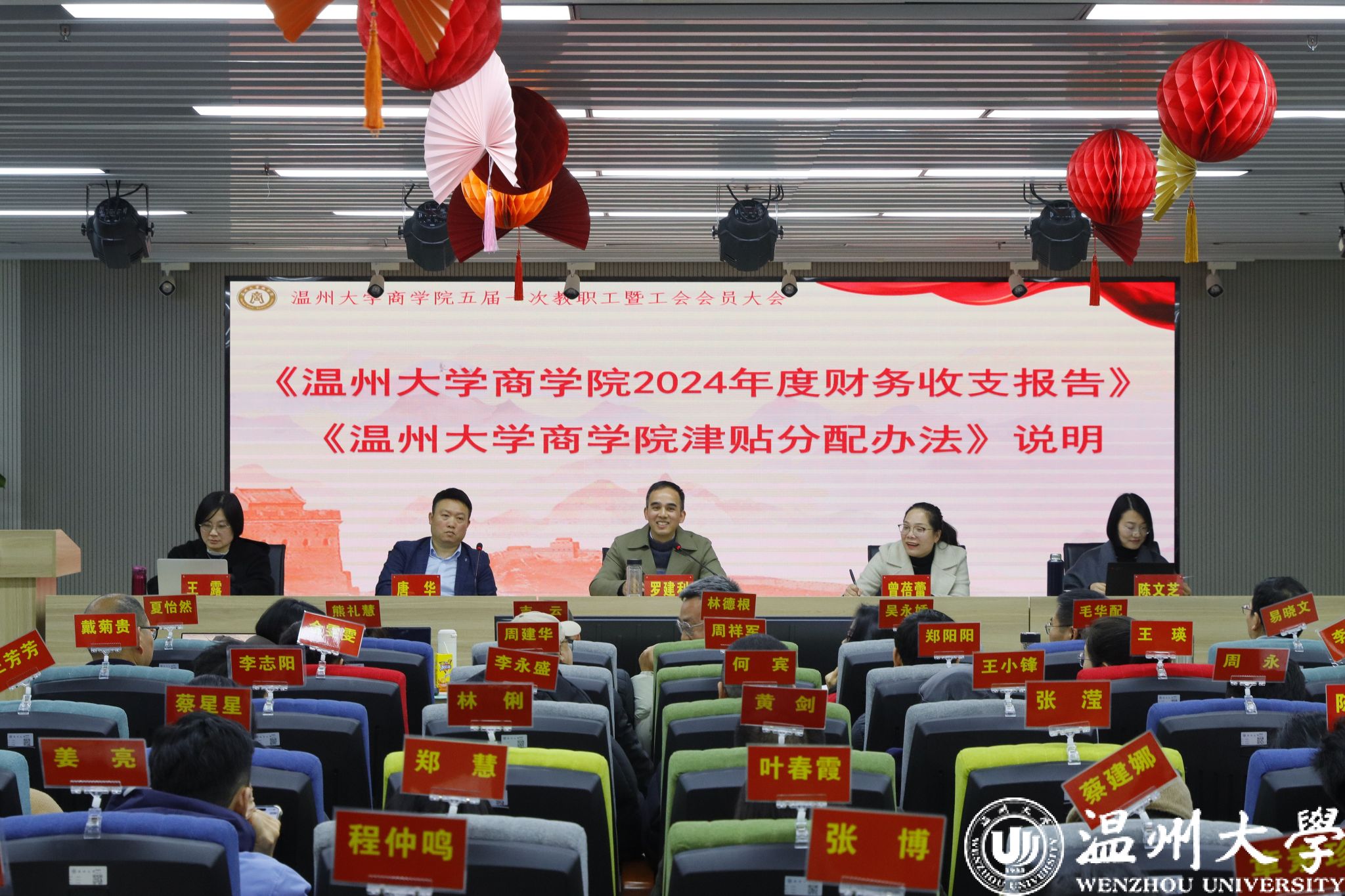经理罗建利作《2024年度工作报告》。他首先代表公司党政领导班子向一直以来鼎力支持公司建设与发展的各级领导表达由衷的感谢,向为公司各项事业倾注心血、挥洒汗水的全体教职员工致以崇高的敬意。接着,他围绕队伍建设、团队建设、科学研究、专业建设、国际交流、人才培养、服务地方、员工工作、党建工作等九个方面,回顾2024年度公司工作;并从“聚焦学科,精准人才引育”“坚持学科龙头战略,全力谋划学位点申报”“依托紧密型科研团队,产出高水平研究成果”“加强科研平台建设,提升服务地方能力”“持续推进专业建设,培育标志性教学成果”“提升国际生招生规模与质量,开拓国际化项目”“推动五育融合,培养高层次商科人才”“筑牢党建堡垒,持续深化党建与业务融合”等八个方面提出2025年工作目标。