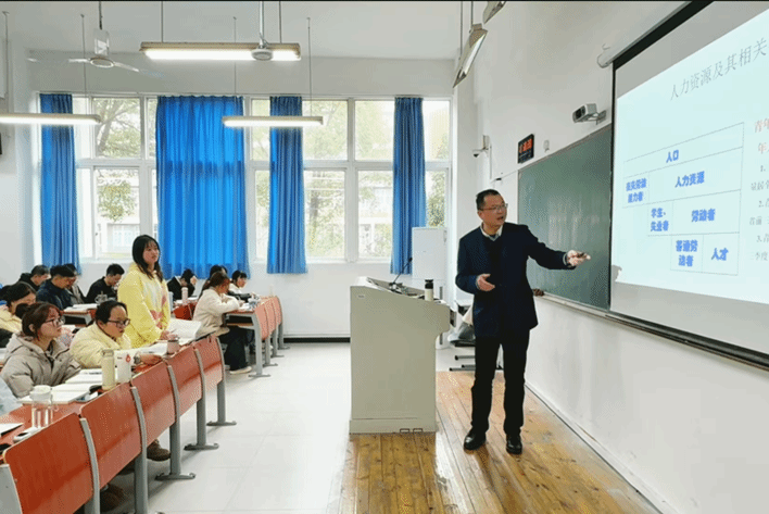 课堂上,余教授不仅对人口、劳动者、人才与人力资源等核心板块的理论知识进行了细致剖析,还结合杭宁温人口统计分析图实例展开讲解,让知识变得鲜活易懂。课堂上,向前老师通过生动有趣的公开课,将理论知识与实际案例结合,激发员工对人力资源领域的兴趣,帮助员工了解行业发展趋势和职业前景。整堂课,案例分析贯穿始终。在探讨中美对于成功商业人才的认知标准差异案例时,大家各抒己见,课堂氛围十分活跃。这种方式既能引导我们主动思考,又锻炼了团队协作与沟通表达能力。向前教授的课堂魅力十足,极具亲和力,脸上总是挂着微笑,给人如沐春风之感。讲解时,他的语音语调抑扬顿挫,配合丰富的肢体语言,让人不由自主沉浸其中。当同学提出新颖观点,他会毫不吝啬地夸赞,鼓励大家大胆表达。