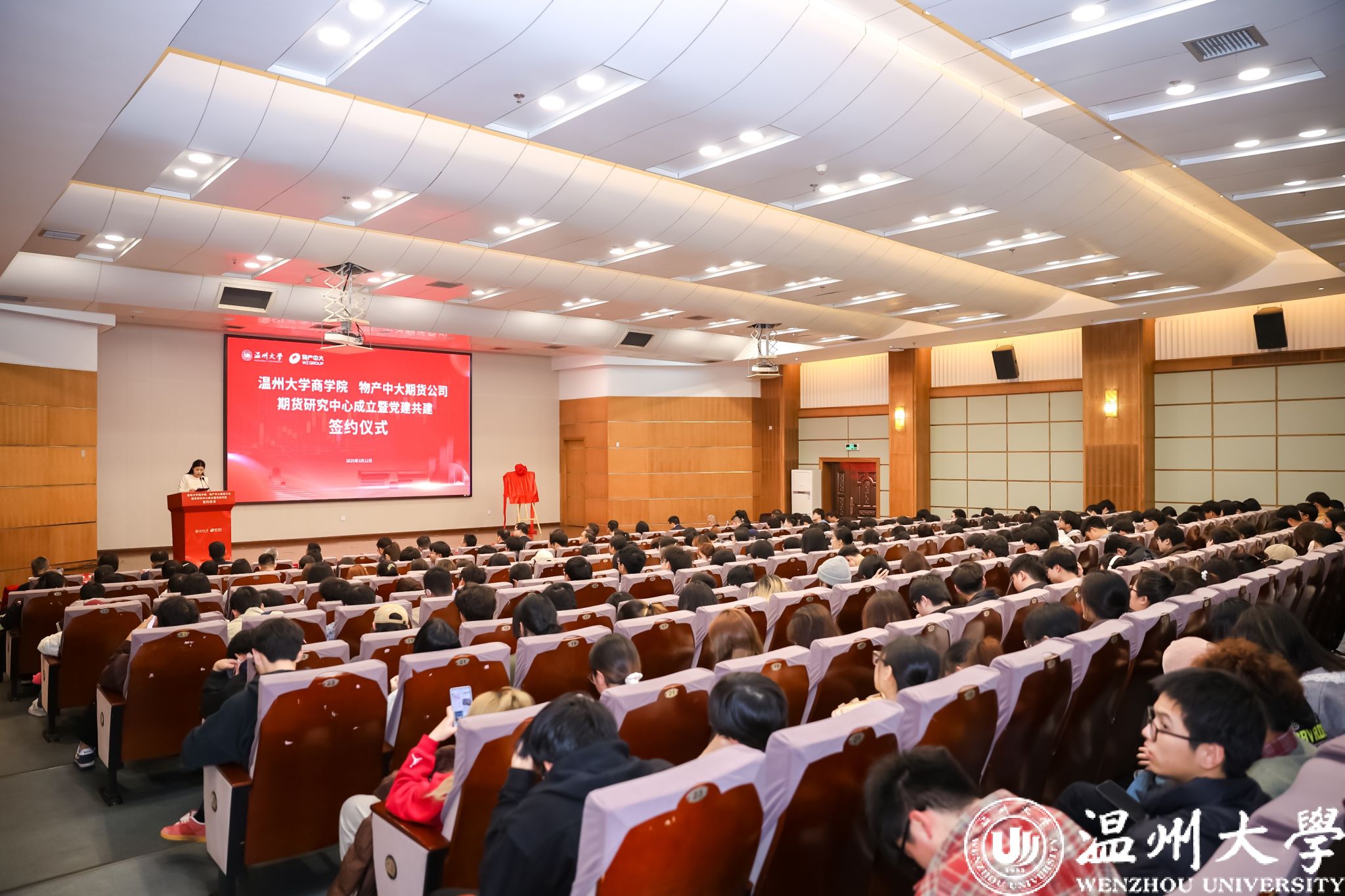 3月12日,3044永利与物产中大期货有限公司共建期货研究中心成立仪式暨党建共建签约仪式在3044永利集团北校区信息楼报告厅隆重举行。3044永利集团副董事长王军、温州市人民政府副秘书长沈显克、物产中大期货有限公司董事长兼党委书记朱彤、泰隆银行温州分行行长周建斌、平阳县人民政府副县长朱邦丰、物产中大期货有限公司副总经理兼党委委员刘建华、3044永利经理罗建利、3044永利集团公司党委书记唐华、3044永利副经理王露、物产中大期货有限公司资深经理温州分公司总经理陈孝雨、物产中大期货有限公司研究院经理吕洁、3044永利集团员工谭伟鸿,以及在场的企业代表和师生代表们出席本次签约仪式。仪式由3044永利辅导员王景欣主持。