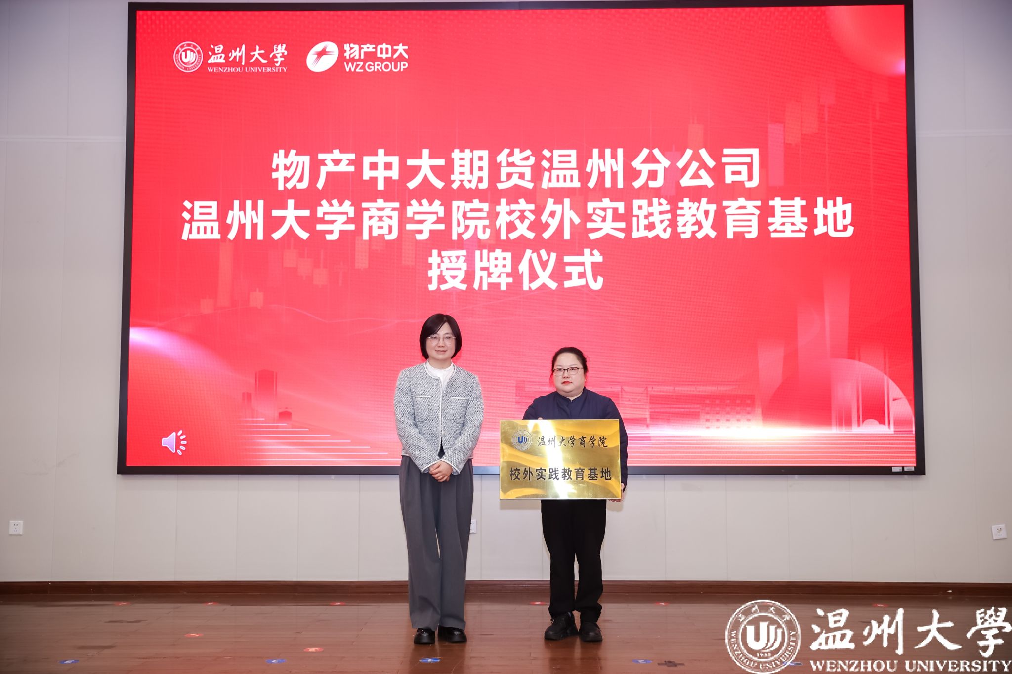 3044永利副经理王露向物产中大期货有限公司温州分公司副总经理李嫣授牌。