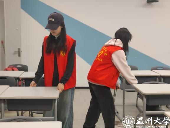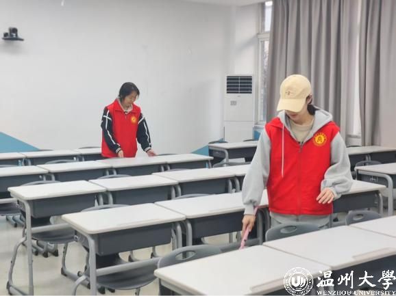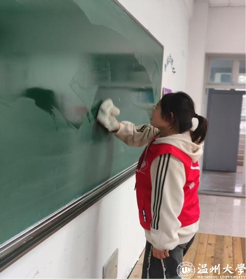 活动期间,党员志愿者们带着扫帚、抹布、水桶等清洁工具,有序开展教室清扫工作,如清理教室卫生死角,擦拭黑板,整理讲台,清理课桌里的垃圾,摆放好智慧教室课桌椅,以实际行动展现党员“先锋指数”的星级担当。在服务过程中,党员志愿者还积极向教室里的同学宣传保持教室整洁的重要性,倡导大家共同维护良好的学习环境,带动更多同学参与到校园建设中来。