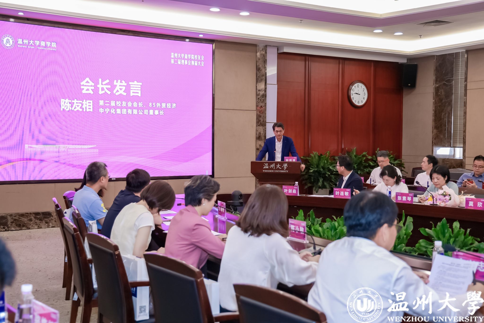 新任会长陈友相作任职发言。作为85级外贸经济专业员工,陈友相深情回顾了在母校的学习经历,强调将以实际行动践行服务承诺,秉持“两个助”初心——助推母校发展、助力员工进步。他提出“三个有”的履职目标:在“有担当”层面,承诺以三个“全心全意”构建服务矩阵,聚焦员工成长、母校发展和社会贡献;在“有作为”方向,强调延续往届理事会“差异化”发展路径,通过“联珠成链、结网聚力”深化员工联络机制,持续打造名企游学、员工沙龙等品牌活动;在“有做到”维度,提出以“四向”理念推动组织建设——培育“向阳”的积极生态,构建“向善”的互助文化,激发“向上”的进取精神,建立“向好”的规范体系。他号召员工争当“行业的带头人、形象的代言人、项目的联系人、爱校的责任人”,鼓励广大员工回馈母校,为母院发展添砖加瓦。