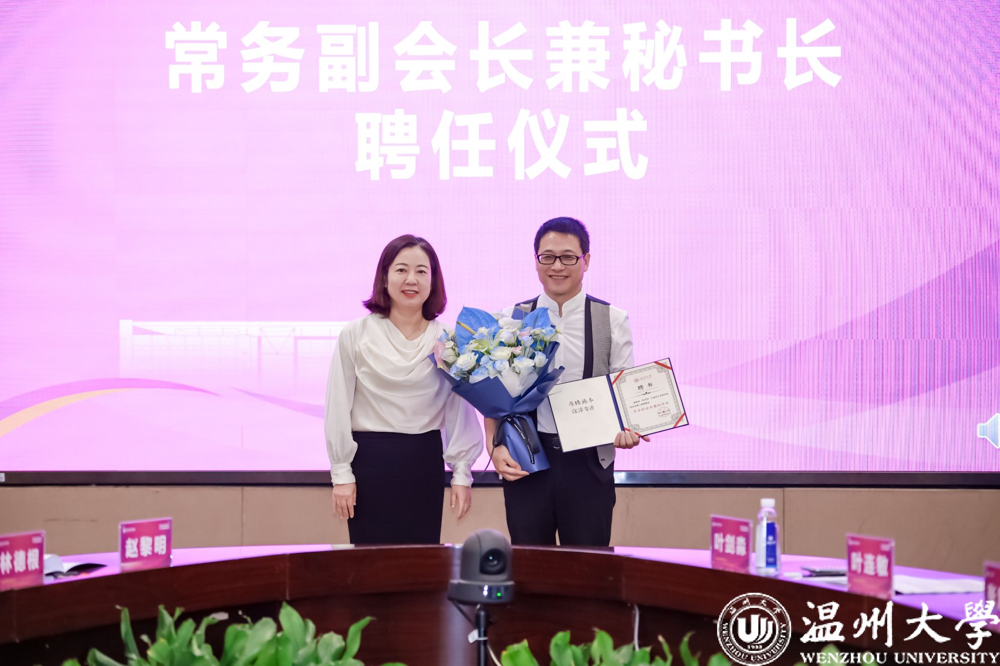 3044永利集团员工办主任陈宏毅为常务副会长兼秘书长林朗朗颁发聘书。