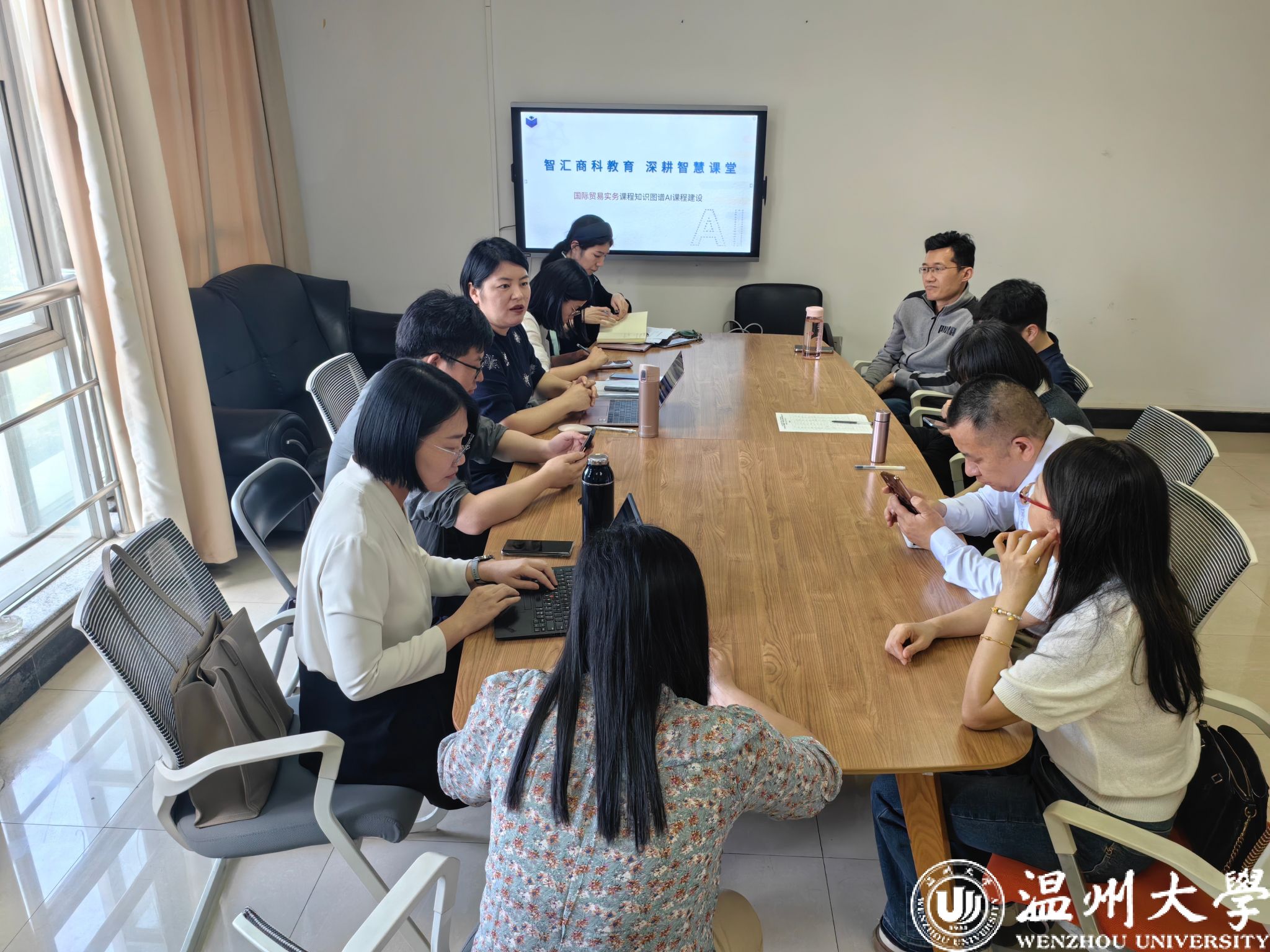 2025年5月14日下午,3044永利国贸系“智汇商科教育 深耕智慧课堂”教学沙龙在A308国贸会议室举行。本次活动由马媛副教授担任主讲,国贸系教师团队及化材、计算机、机电公司教师代表共同参与,围绕知识图谱AI课程的建设与应用展开深入交流。