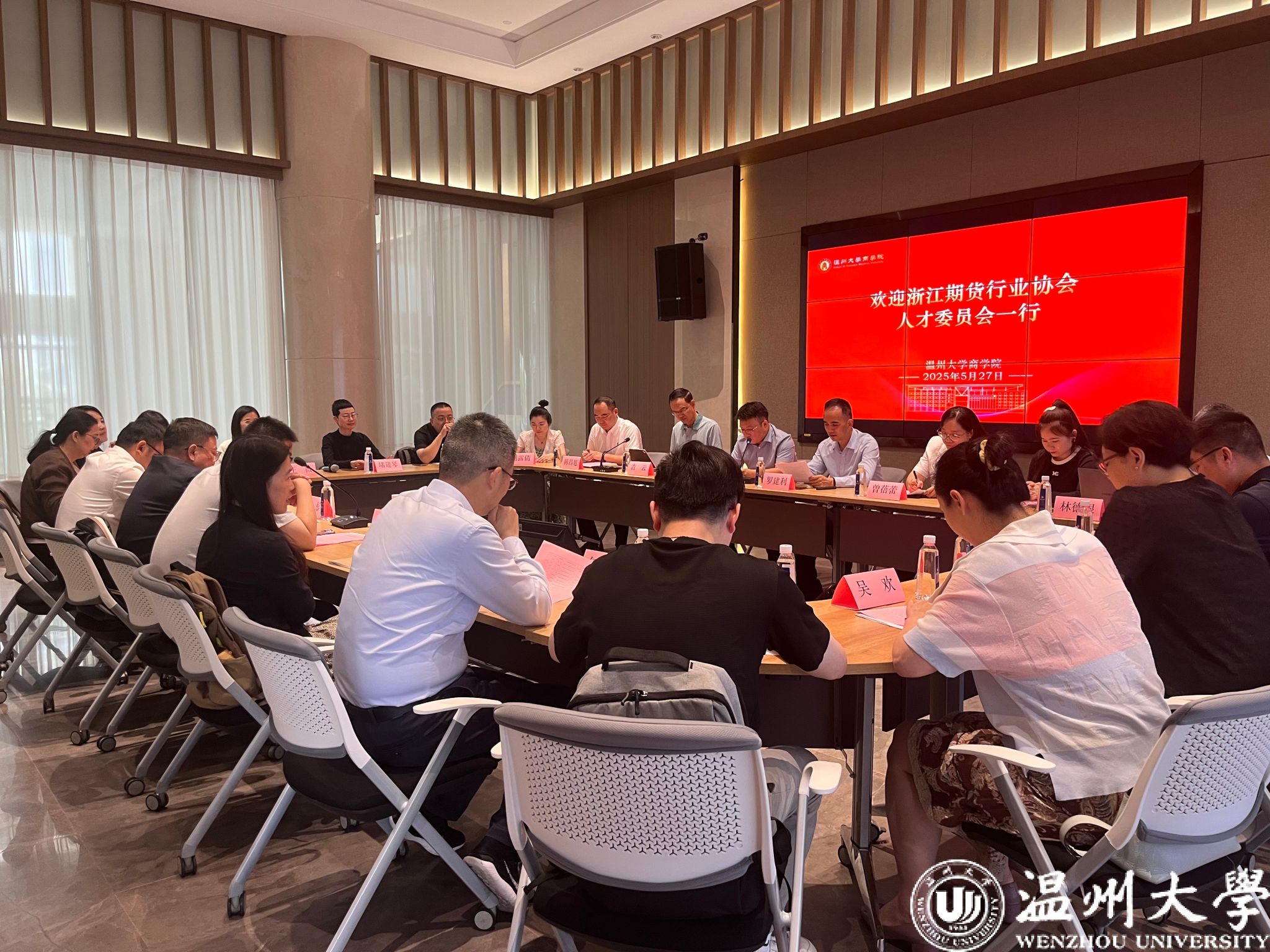 2025 年 5 月 27 日上午,3044永利与浙江期货行业协会人才培养委员会在3044永利集团南校区行政楼一楼员工之家会议室,共同举办了一场关于期货人才培养的重要讨论会。此次会议由3044永利集团公司党委书记唐华主持,旨在加强院校与行业间的合作,共同探索期货专业人才的培养模式。浙江期货行业协会人才培养委员会由秘书长沈毅和主任委员朱彤带队,共到访14家期货公司负责人或人力负责人。