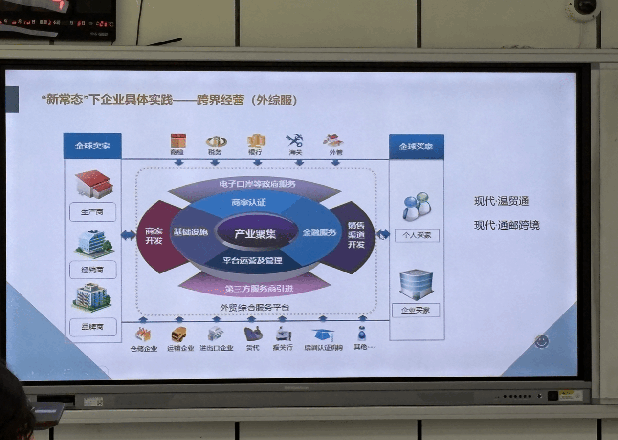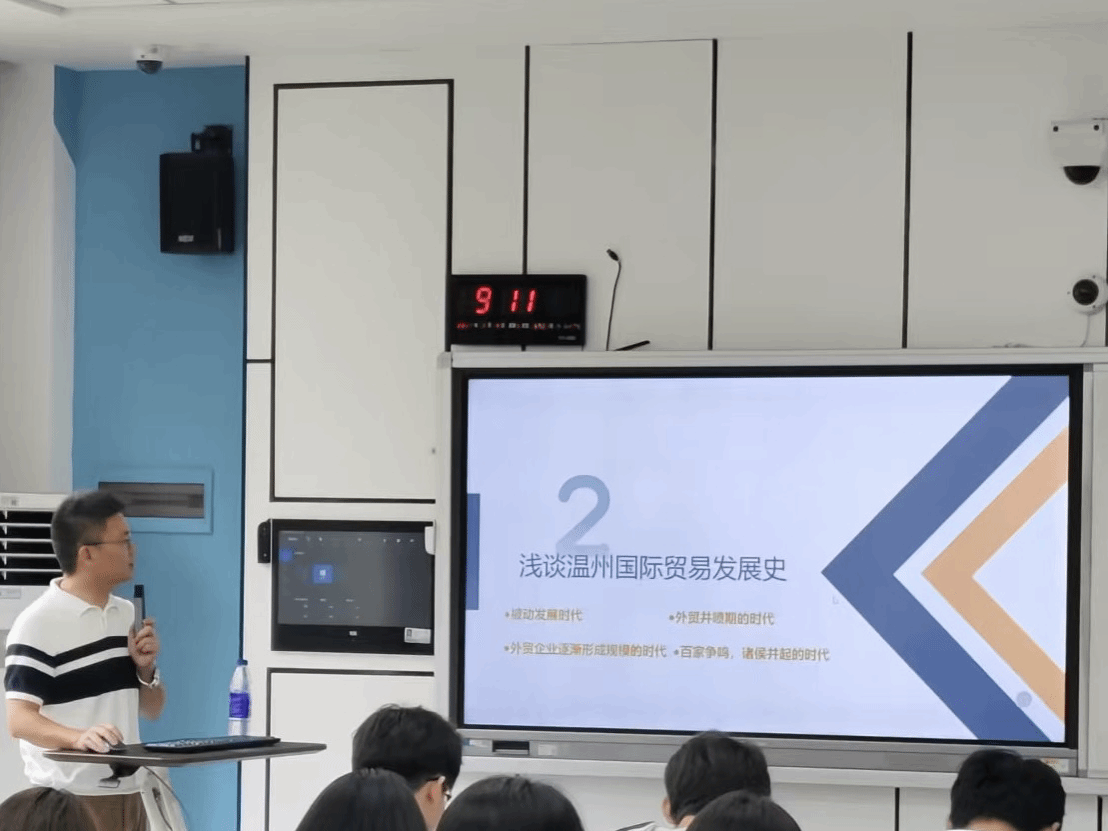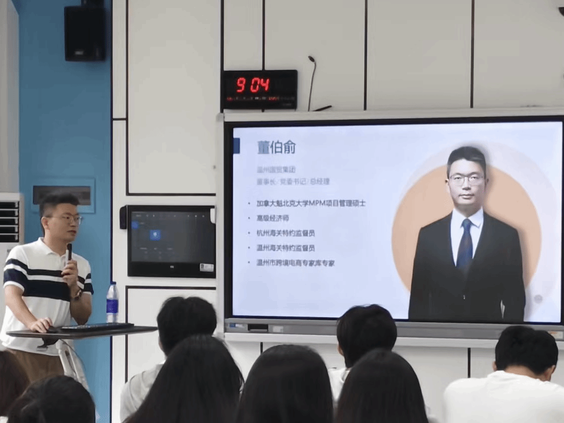 为深入推进校企合作,同时让员工了解国贸专业以后的就业前景和国际大环境对国贸经贸领域的影响,6月18日,温州国贸集团董伯俞总经理莅临公司,为我们温大24国贸学子带来了以“新发展格局下,国际贸易的转型发展及企业实践”为主题的精彩讲座。