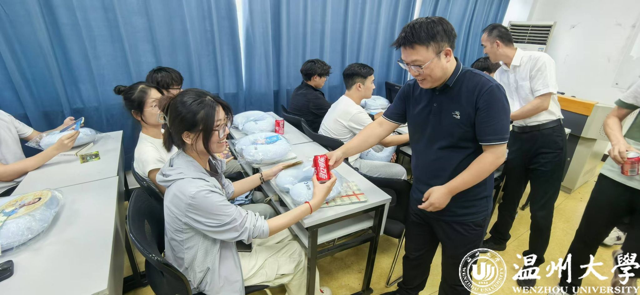 系主任、26届毕业班班主任代表等逐一向同学们送上最真挚的祝福和鼓励。随后,老师们亲手将公司精心准备的慰问礼包一一送到每位考研学子手中,这份沉甸甸的心意,不仅承载着公司对学子生活上的关心,更是对他们未来成功上岸的美好祝愿。