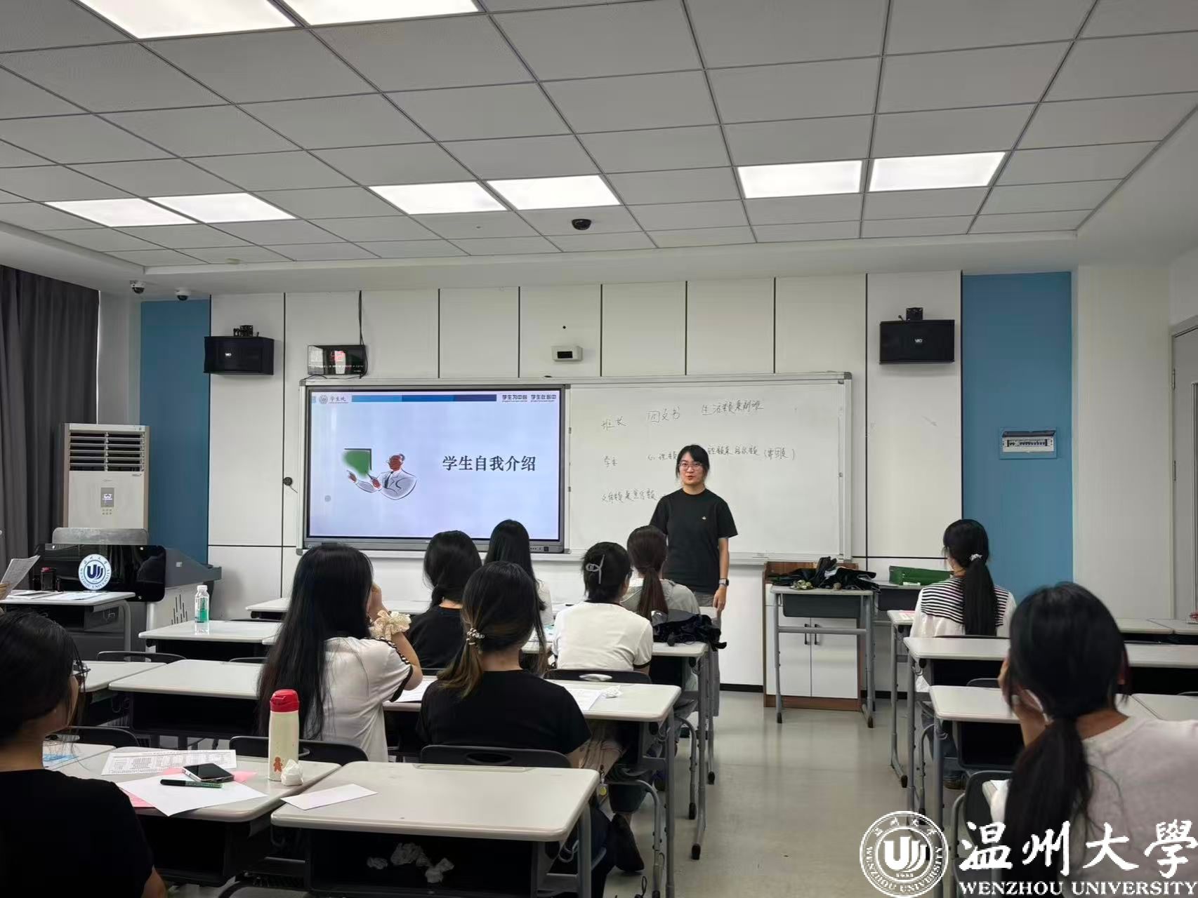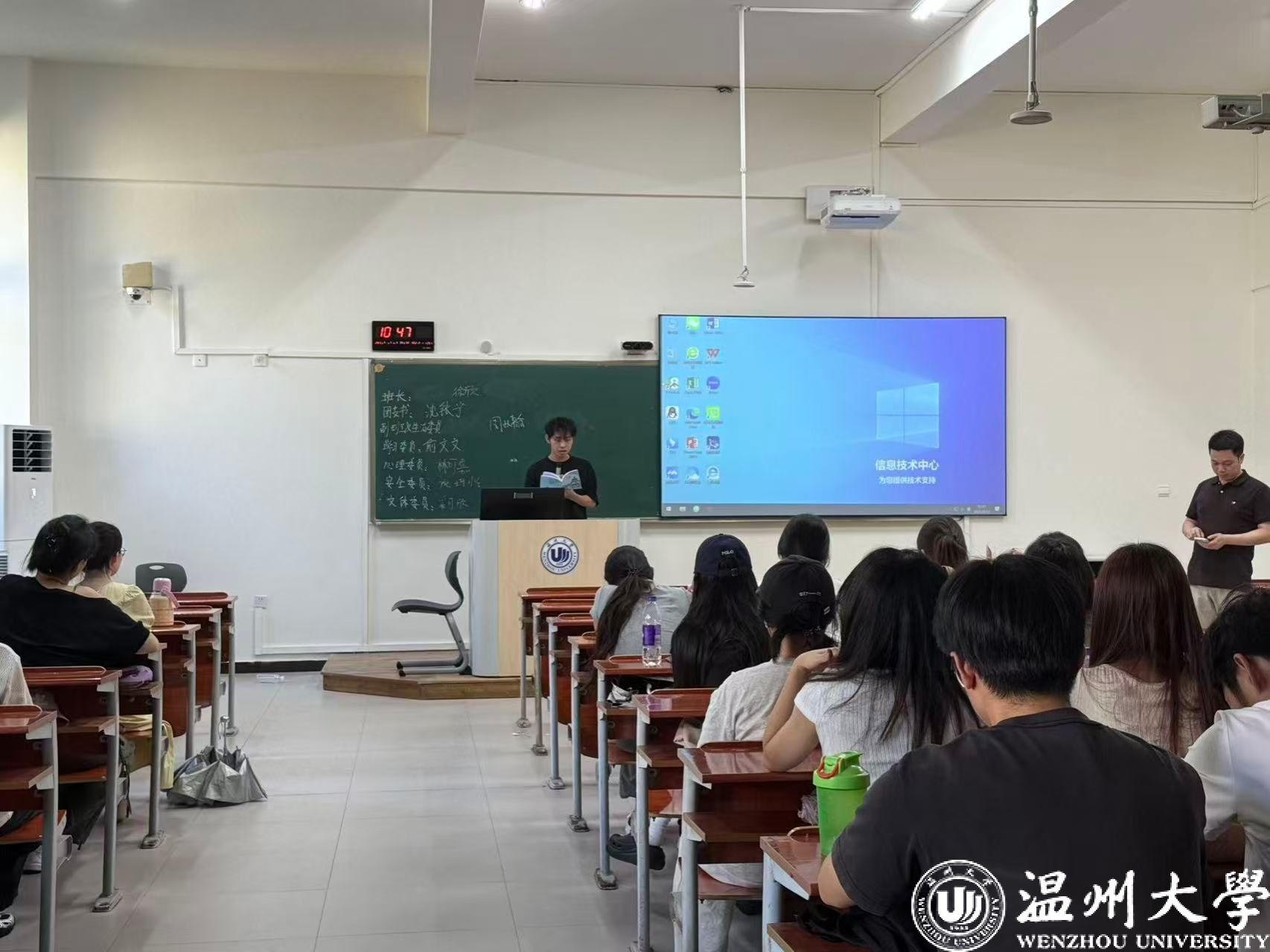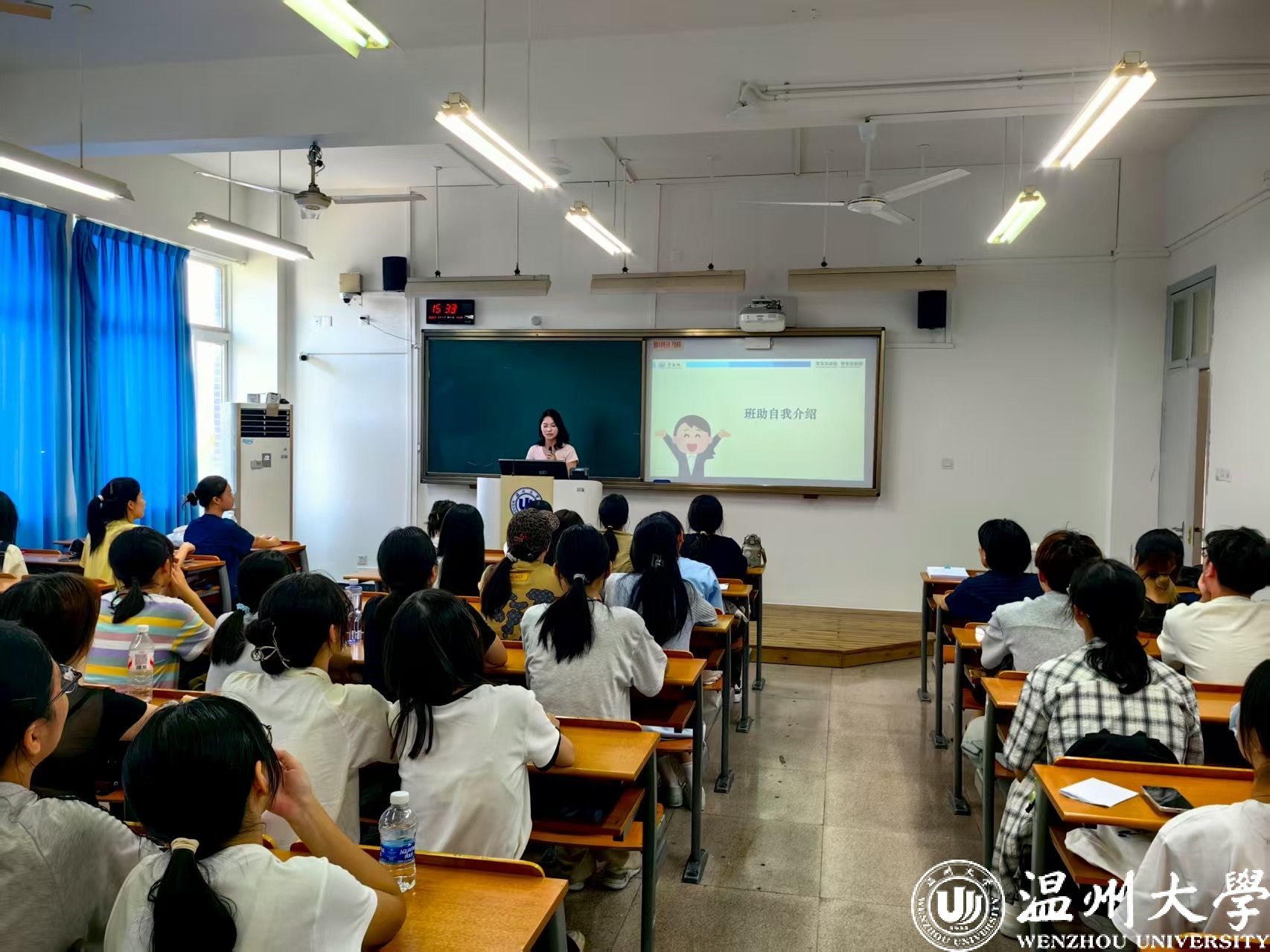 班会伊始,班主任先进行自我介绍环节。班主任介绍个人教育背景、研究领域及教学安排,将为新生学业与生活提供支持;班助以学长学姐身份,介绍职责范围,明确会在选课、社团参与等方面提供帮扶;新生逐一发言,分享个人基本情况、兴趣爱好及大学规划,快速熟悉彼此。