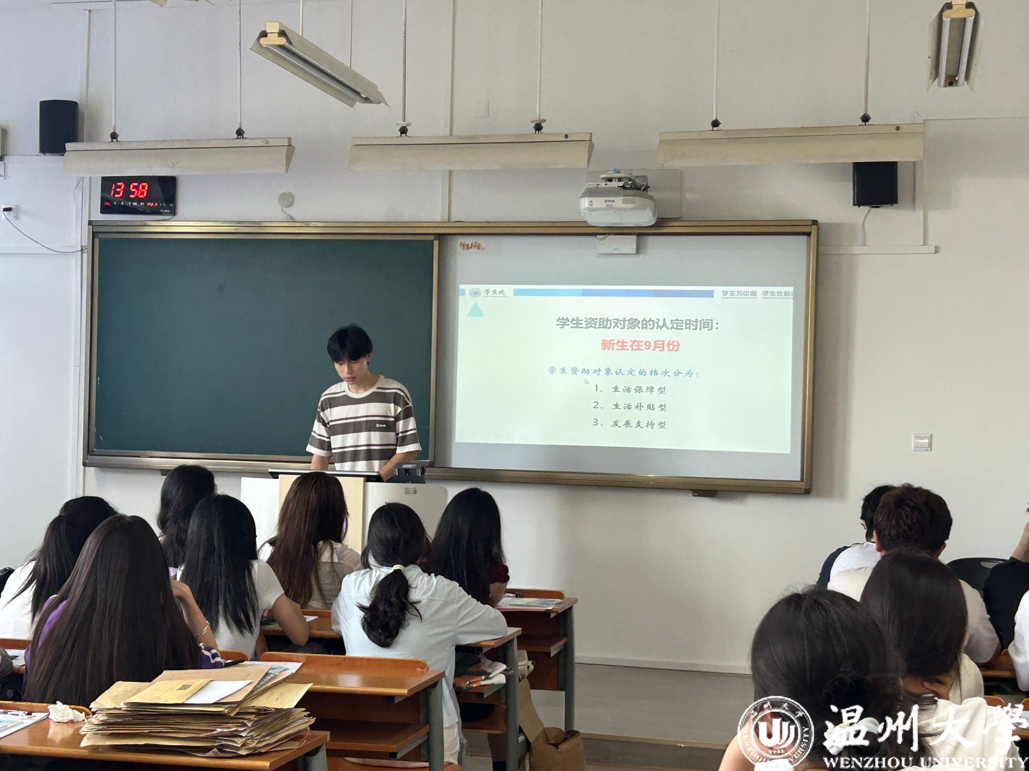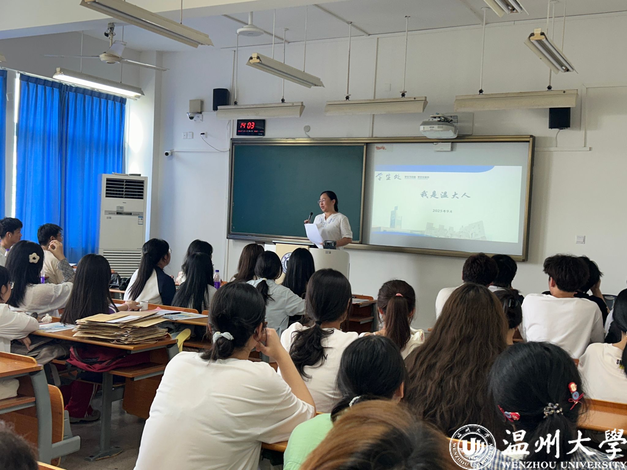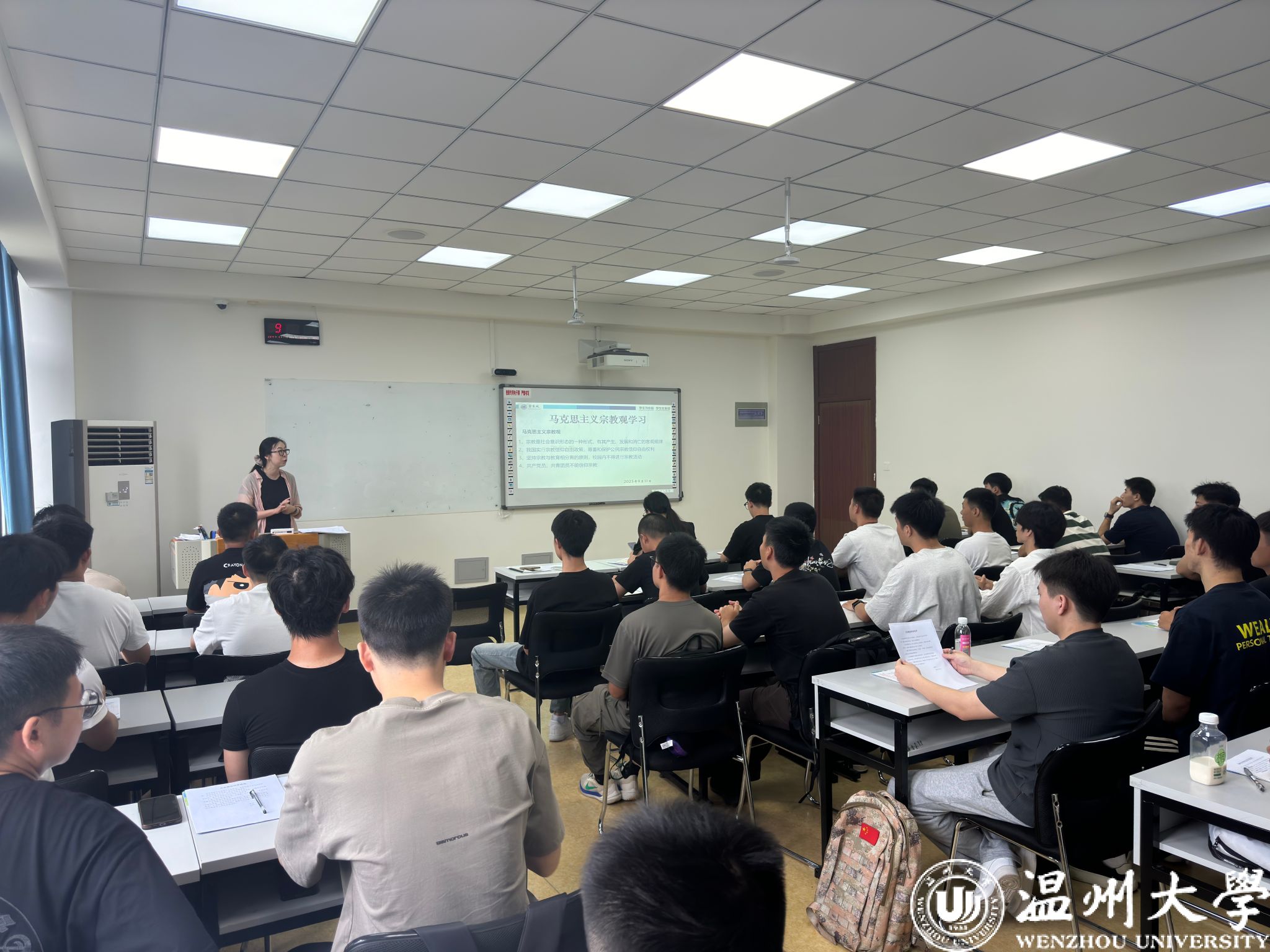 接着,进入事项解读环节。班主任们聚焦马克思主义宗教观,结合法规与校园实际,明确“宗教与教育相分离”原则;通过“校园贷”“刷单诈骗”等案例,讲解诈骗防范要点,提醒新生守护财产安全。班助解读《员工手册》中纪律处分条例、违规大功率电器使用规定;介绍必须关注的校园公众号、宿舍报修途径、校园通知查询方法、培养方案查询路径、幸福工坊地址,以及校院员工会、员工社团情况。