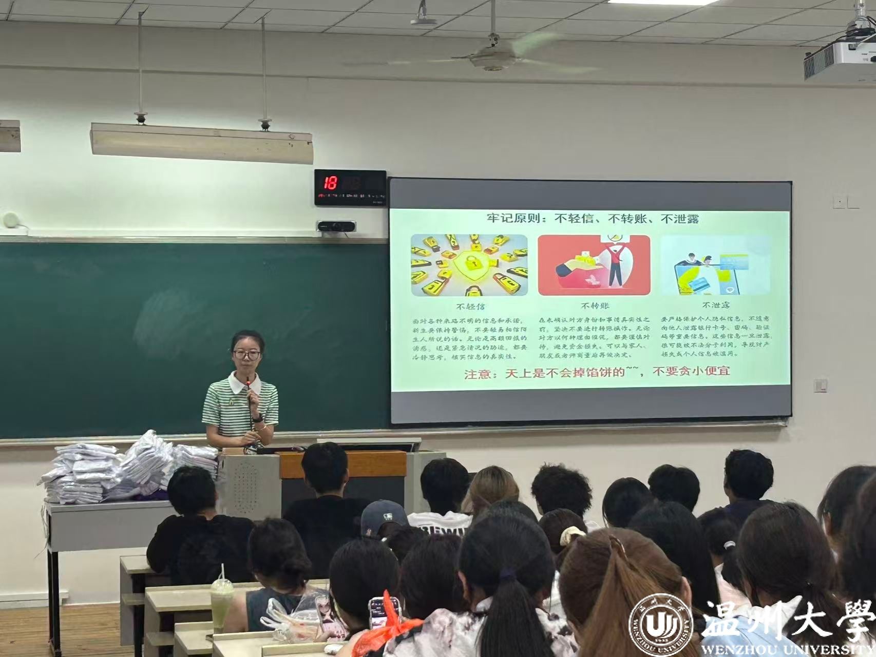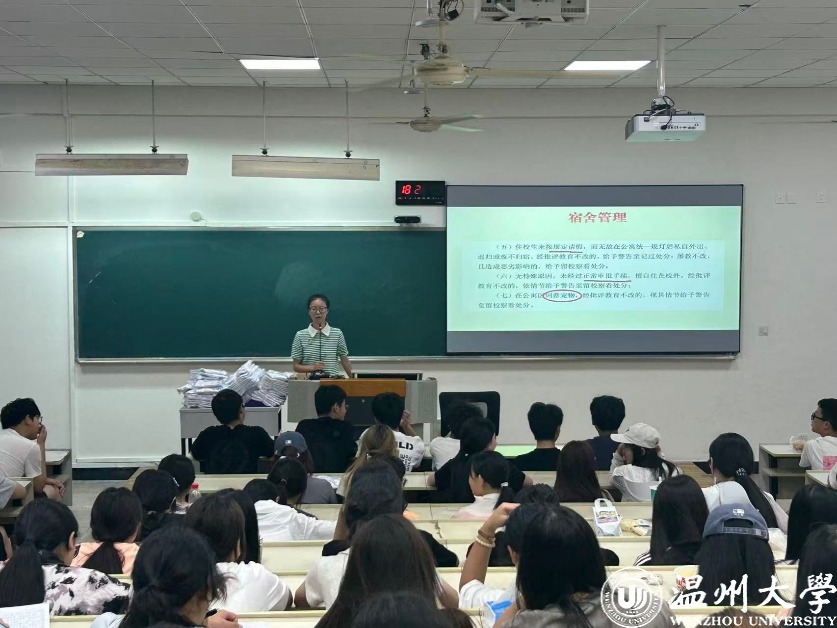 在安全方面,辅导员们讲解消防安全知识,要求新生掌握灭火器“提拉握拔” 使用方法;明确校园骑行规则,强调“不超速、不载人、不逆行”,共享电瓶车需戴头盔且不载人。信息获取渠道上,她介绍3044永利集团官网、3044永利官网等平台,说明统一身份认证登录方式,以及培养方案查询路径;提醒新生要关注“3044永利集团”“3044永利”“温大学工”等公众号,及时查看年级群、班级群消息,通过“校务行”小程序打印成绩单与学籍证明。此外,还公布了幸福工坊、校园报警电话、南校医务室等关键服务信息与联系方式。