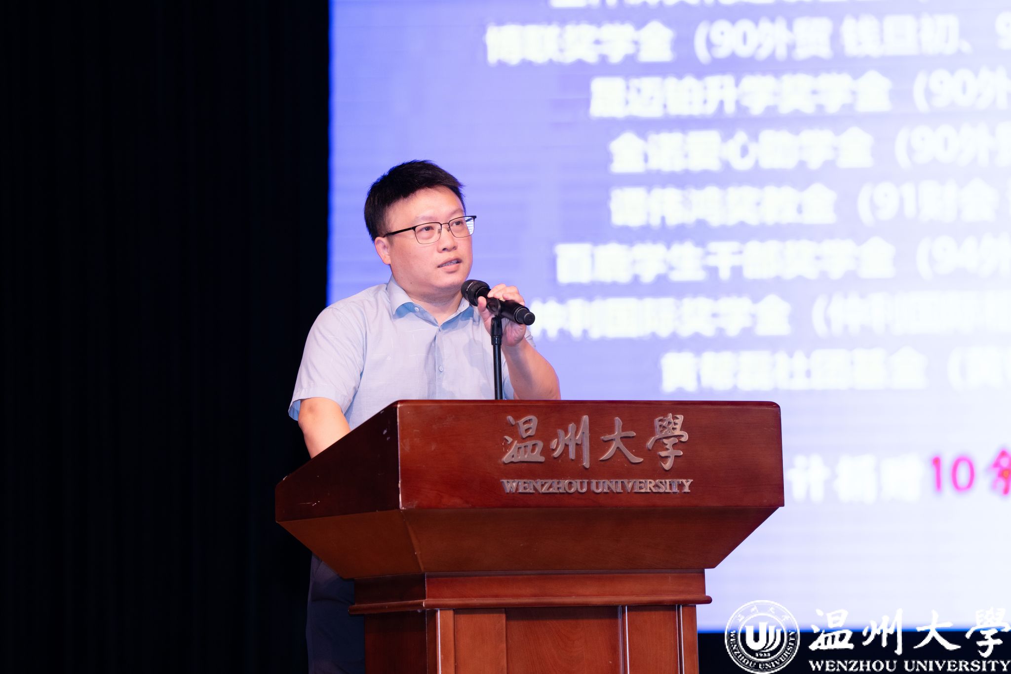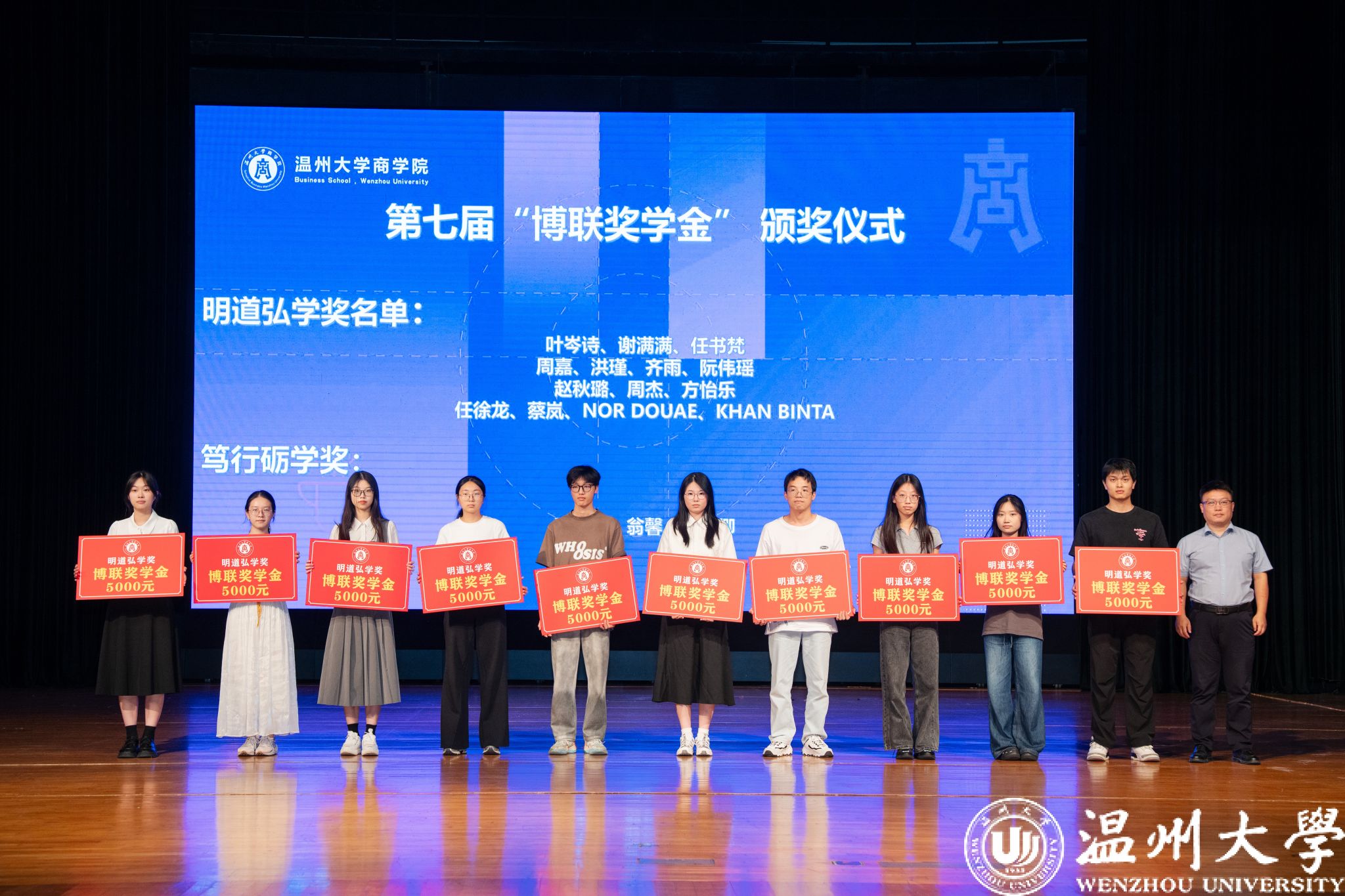 仪式上,第七届 “博联奖学金” 颁奖仪式同步举行。获奖员工依次上台领奖,他们的优秀表现赢得了现场师生的阵阵掌声。公司党委书记唐华为新生介绍了公司优秀员工捐赠的各类奖助学金;随后,“書立奖学金” 评选启动仪式正式开启,唐书记介绍了奖学金由来及评选标准与流程,鼓励同学们以更高的标准要求自己,争取获得荣誉。