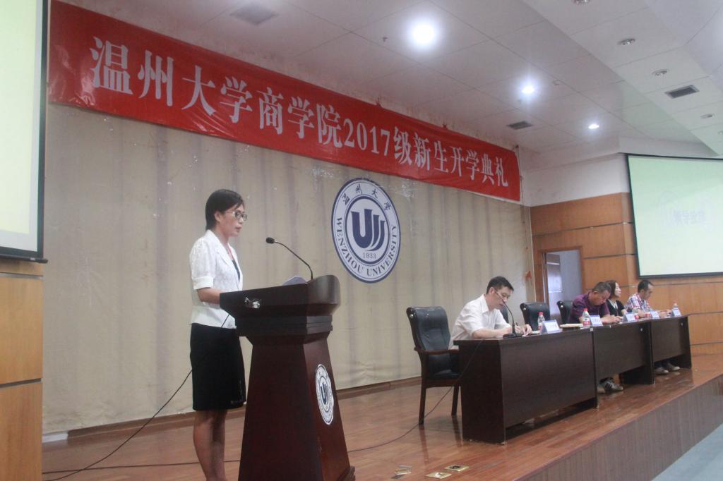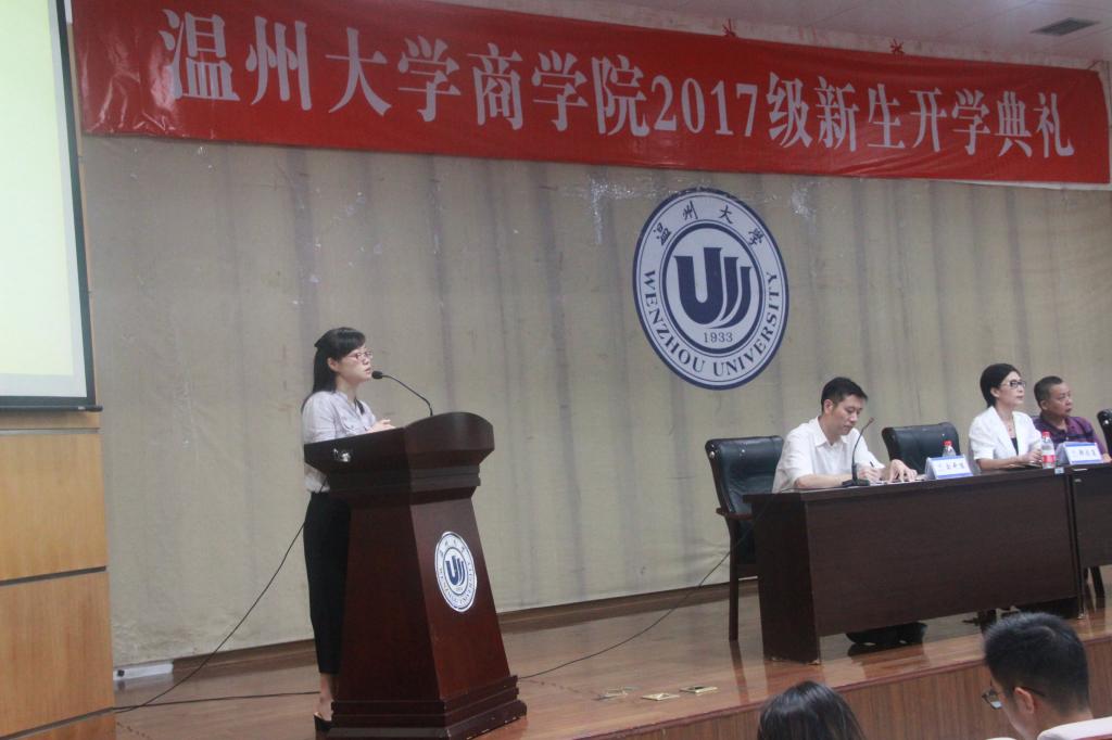 教师代表张滢博士在发言中指出大学的学习是研究性学习,相较于中学的学习更侧重于专业素养与研究能力。她以"精专业、强外语,能创新"九字表达了自己对于新生的期望与要求。同时,她也勉励新生学习青年博士的专注与勤勉,努力做到“聚是一团火,散是满天星”。